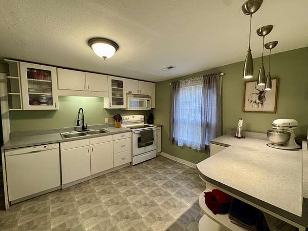 Est $1,323/moCute and clean farm house ready for you to move in and enjoy! Open living/dining, cute kitchen with white cabinets and some glass fronts, glass top stove, microwave and Bosch dishwasher. Fresh paint and some new flooring. Other features include a partial unfinished basement, covered patio to enjoy nature and 2 barns all on 10acres. The land is partially open but mostly wooded. A great buy for all this home and property has to offer.