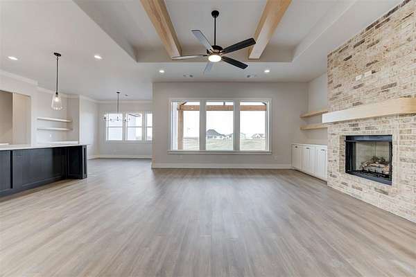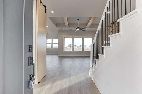 This stunning modern farmhouse sits on 2 acres of land, offering peaceful views across from the neighborhood pond. It features 4 spacious bedrooms, 3.1 bathrooms, the upstairs bedroom could also be a bonus area. A dedicated office provides an ideal space for remote work or study. The upgraded kitchen is equipped with top-of-the-line GE appliances and includes a walk-in pantry for ample storage, along with soft-close doors and drawers for a sleek, modern touch. The primary bath is a true retreat, featuring a walk-in shower, separate vanities, and plenty of space to unwind. A convenient Jack-and-Jill bathroom serves the additional bedrooms. Large windows in both the dining and living rooms fill the home with natural light, creating a bright and inviting atmosphere throughout.