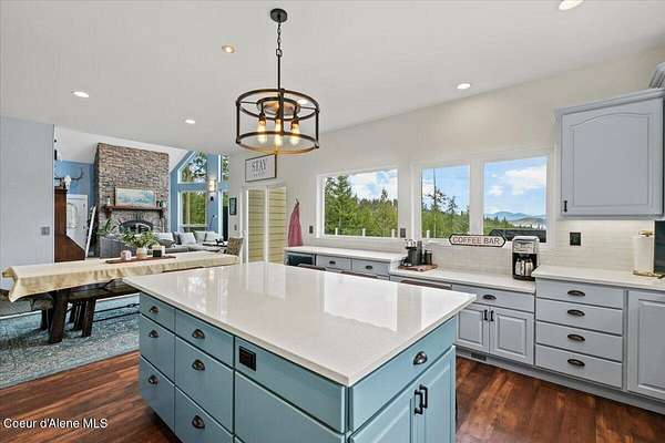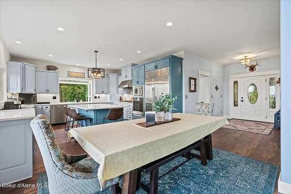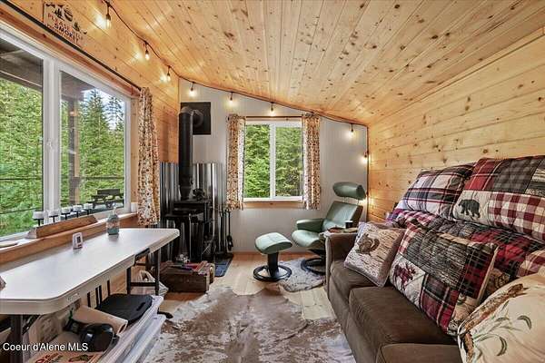 Experience the perfect blend of privacy, space, and breathtaking natural beauty with this exceptional 3,741 square foot home overlooking Coeur d'Alene Lake. Nestled on 10 acres of gently sloping, fully usable land. This 4-bedroom, 3-bathroom residence offers room to live, relax, and explore. The kitchen is completely remodeled with all the top of the line appliances you would expect from a gourmet kitchen, allowing the chef to take in all the beauty of the lake! There is a full mother-in-law quarters in the basement with its own kitchen and point of entry. Incredible lake views are enjoyed from every angle of the home, and unwind in a setting that feels like your own private retreat. A massive 60' x 40' heated shop with a full bath and 30 & 50 amp plugs to let you tackle all of the power tools you could want, providing ample room for hobbies, storage, or business needs. Safety above all else can be seen in the 4 x 10 gun safe/safe room & there is a top of the line 6 person sauna There is a charming small cabin set alongside a seasonal creek offering a peaceful escape for guests or quiet moments in nature. The icing on the cake is the RV parking with sewer dump and a 30 amp hookup. The entire 10 acres is easily navigable, making it ideal for endless outdoor activity possibilities. Despite its secluded feel, this property is just 18 minutes from downtown Coeur d'Alene, giving you quick access to dining, shopping, and all the amenities the area has to offer. This is more than a home--it's a lifestyle defined by space, views, and unmatched tranquility.