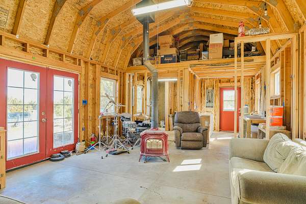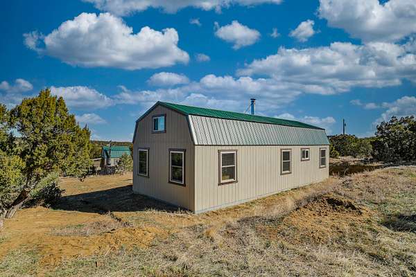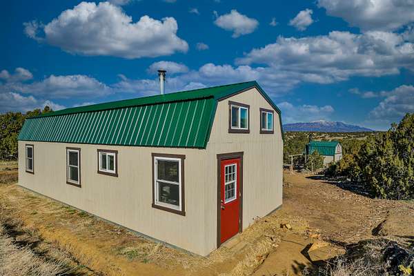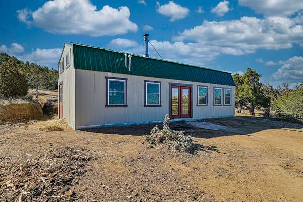 Tucked away on 6 private acres off a maintained county road, this scenic retreat offers stunning views just 10 minutes from Walsenburg and Lathrop State Park. With a solid foundation in place, this cabin is ready for your finishing touches--whether as a peaceful getaway or a full-time home. The open floor plan features a vaulted ceiling, abundant windows that fill the space with natural light, a cozy Vermont Castings wood stove, and a loft for added versatility. A durable metal roof ensures long-term protection, while essential utilities are already installed, including a 1,700-gallon cistern and a 1,000-gallon septic tank with a leach field, all up to code with active permits. Plus, a 10x12 shed with a loft offers extra storage. Don't miss this opportunity to create your ideal mountain retreat! Home being sold as is.