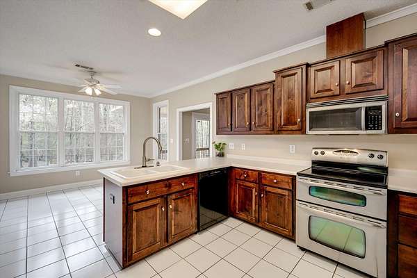 Are you looking for privacy? Welcome to this gorgeous ranch on 2.56 acres in Appling! Home features: 3 bedrooms, 2.5 baths, gorgeous great room w/vaulted ceiling and gas log fireplace flanked by cabinets and shelving. Mostly tile and hardwood flooring throughout. Country kitchen with beautiful wood cabinets, built in dishwasher and microwave. Formal dining room with tall ceilings and heavy molding. Large laundry room (10x10) w/utility sink, cabinets and hanging bar. Bring your boats, RV's and other toys. Tons of garage space in this property! Oversized double car garage w/insulated door attached to home. Also, detached building (30x30) with two oversized single car garage doors, workshop area and upstairs an unfinished space w/vault ceiling (19x24) w/mini splits. Covered and open decking (hot tub remains). PLUS an additional storage building on property.