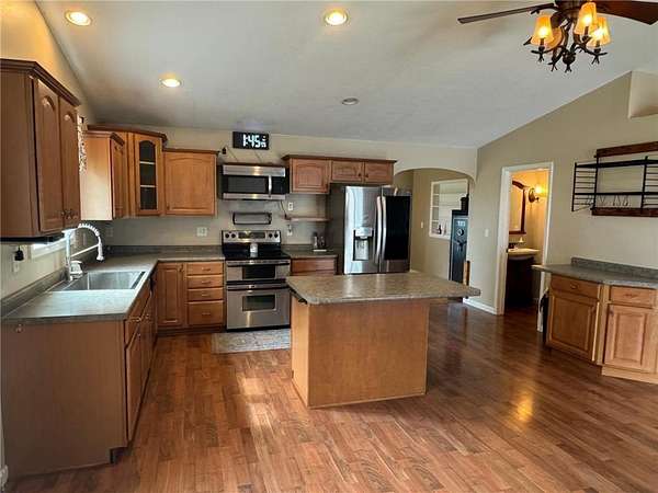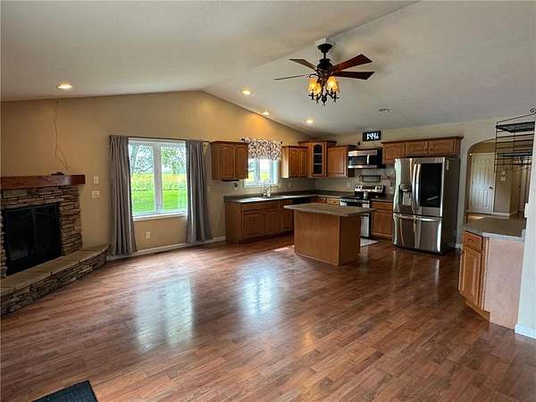 Est $2,039/moCountry living at its best! Turn key property with all of the privacy you desire, and the convenience of being just a 1/2 from highway 71. You'll love the spacious kitchen and open floor plan this property has offer. Complete with an attached double garage and multiple outbuildings for your storage needs.