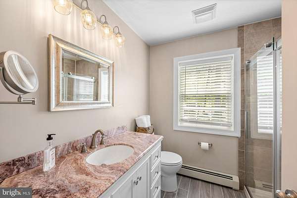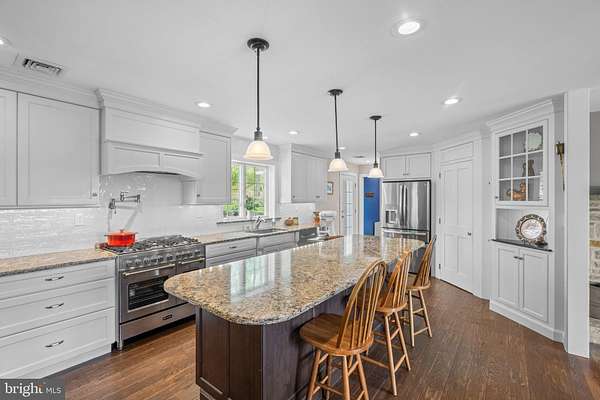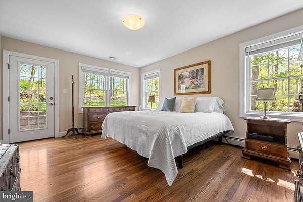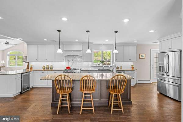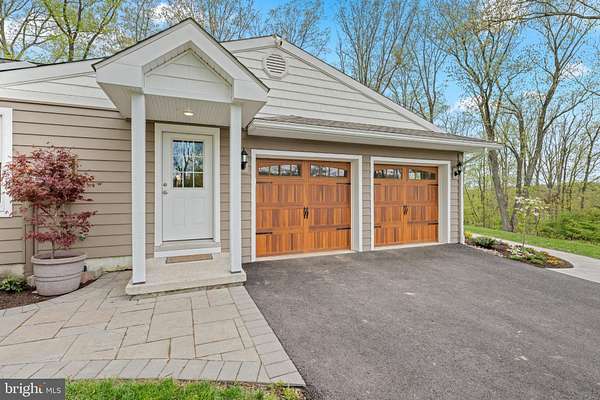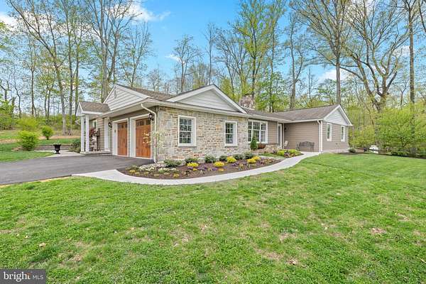 Tucked quietly up a long private drive and set on over 7 acres of wooded grounds in sought-after Hilltown Township, this beautifully renovated rancher offers a rare combination of privacy, thoughtful design, and everyday comfort. Originally a charming ranch home, the property has been extensively reimagined into a warm, open-concept retreat designed for both entertaining and easy one-floor living. Natural light pours through upgraded Andersen windows, creating a seamless connection to the surrounding landscape and filling the home with a bright, inviting atmosphere. At the heart of the home is a stunning chef's kitchen featuring custom cabinetry, quartz countertops, and a large 10-foot island with a pull-out mixer stand and abundant storage. High-end appliances include a 36" gas range with double ovens, pot filler, oversized refrigerator/freezer, microwave drawer, and both a walk-in pantry and additional pull-out pantry storage-making the space as functional as it is beautiful. The adjacent living spaces are designed for comfort and gathering, highlighted by vaulted ceilings, expansive windows, and a centrally located wood-burning stove that provides both warmth and ambiance. The primary suite offers peaceful wooded views, a spacious walk-in closet, and a spa-like bath complete with radiant heated floors, a jacuzzi tub, and a glass-enclosed shower. Two additional generously sized bedrooms provide ample closet space, including one with its own walk-in closet, along with a well-appointed second full bath. The home also features a walk-out basement, offering additional flexible space with direct access to the outdoors-ideal for storage, a workshop, or future finished living space. Outdoor living is just as impressive, with an expansive EP Henry patio stretching the length of the home-perfect for dining, entertaining, or relaxing by the elevated fire pit while enjoying the natural surroundings. The property itself is mostly wooded, offering privacy, abundant wildlife, and a true sense of retreat. Additional features include a highly efficient heating system with multiple options, including a heat pump, traditional oil hot water baseboard heat, and both interior and exterior wood-burning systems, as well as a Generac whole-house generator for added peace of mind. The expansive acreage provides endless possibilities for future expansion, additional structures, or simply enjoying the natural beauty as-is. Minutes away from local wineries and renowned restaurants, shops, and cultural attractions, with convenient access to SEPTA rail service and major travel routes to Philadelphia, New York City, and beyond, this property offers the perfect balance of seclusion and accessibility. This is a home that truly must be experienced to be appreciated-a private retreat where comfort, nature, and thoughtful design come together.