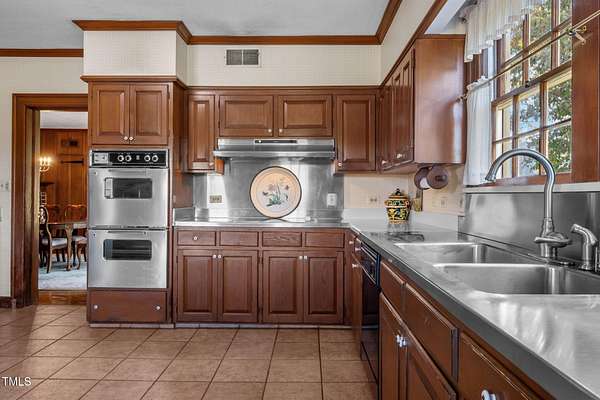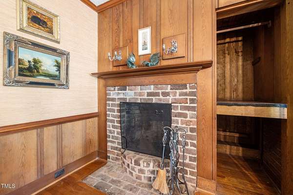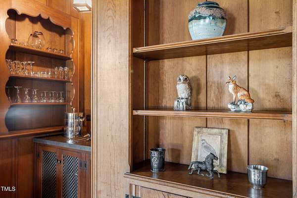 - Beamed Ceilings, Bookcases, Built-In Features, Double Vanity, Dual Closets, Eat-In Kitchen, Natural Woodwork, Pantry, Walk-In Closet(s), Wet Bar