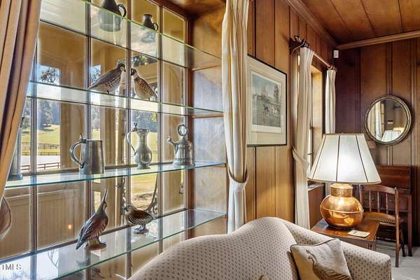 Quail Roost is one of North Carolina's finest farms with its rich history and idyllic setting. The lush rolling hills, majestic barns and silos, peaceful pond and creek, abundant wildlife and grand old hardwoods provide unrivaled views. Offered for sale is the heart parcel of this storied property. The parcel totals 32+ pristine acres with the bucolic home, barn, arena, large pastures and paddocks, shed-row pony barn, run-in, a detached garage and ample storage and parking. Built in the early 1900s, this property has been the host of a multitude of events including the Red Mtn Foxhounds hunt, horse shows, riding schools, upland gamebird hunts, dog trials, lunker fishing, trophy hunting, and family gatherings. The home showcases equestrian elegance and sportsman's flair with original hardwood floors, millwork and paneling, antique finishes, and masonry fireplaces throughout. One story living with exquisite 360-degree views and a floor plan that embraces both entertaining and personal space. Spacious private primary suite, a cozy library/family room, warm living room with wet bar, central dining room, large kitchen, bedrooms all with private baths and flexible basement space. The stately center aisle, seven stall gambrel barn includes a tack room, wash stall, feed room, laundry room, shavings storage and huge hay loft. Constructed with timber from the property, it has been the home of Olympic show horses, hunt horses, a riding school, and beloved furry friends. They simply do not make barns like this one anymore - highly functional, elegant, and built to last for generations. A property so unique and picturesque, it has been a SAG site for numerous commercials and films. Loved by one family for 4 generations, this estate is ready for its next adventure. All you need for your humans, horses and pets and surrounded by an equestrian community with abundant resources. With art-worthy sunrises and sunsets, this is truly one of the most storybook places you will ever set foot or hoof on.