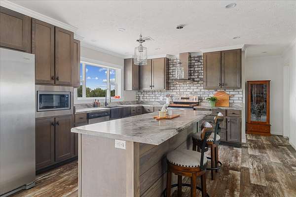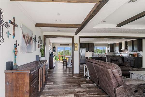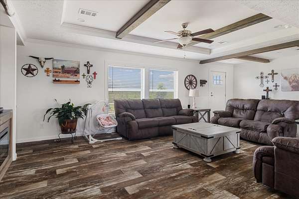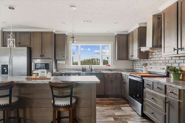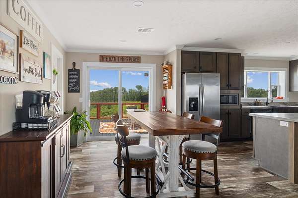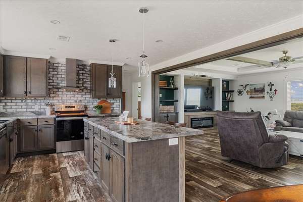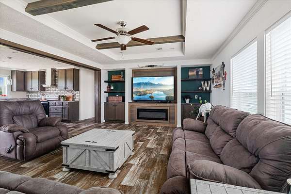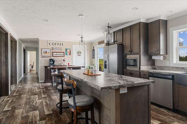 Welcome to this stunning 4 BR, 2.5 BA manufactured home on a permanent foundation. Just 2 years old, this beautiful home blends modern comfort with peaceful country living. Step inside to to find a spacious open concept layout featuring a large kitchen with ample counter space, abundant cabinetry, and all appliances included (excluding washer and dryer). The cozy fireplace creates a warm ambiance in the living area, perfect for relaxing. The primary bedroom includes a private bath, while 3 additional bedrooms provide flexible space for family or office. A large deck overlooks the back yard. There is a whole-home water filtration system as well. Don't miss the chance to make this home yours!