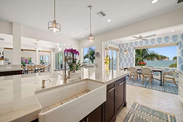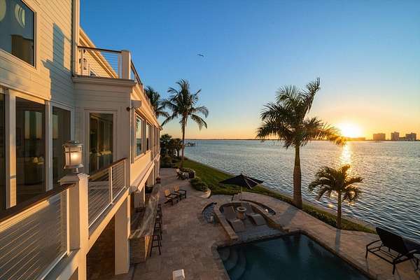 Exclusive Waterfront Estate on Private Belleview Island, enjoy breathtaking open water views and experience the ultimate waterfront lifestyle in this beautifully remodeled coastal home. This impeccably designed, and tropically landscaped estate on a double lot sits atop 1.5 acres in the highly sought after, double gated, private island community of Belleview Island with only 31 homes, and 178' of new seawall. This 5,734sf, 5-bedroom, 5 1/2 bath, 3 story, 3 floor elevator, 5 car garage custom home is the perfect setting for indulgent relaxation or lavish entertaining both inside and outside the home, with wrap around verandas and terraces that capture unobstructed water views. You will immediately take note of the exceptionally fine details, extraordinary appointments and incredible architectural features in this home. The timeless design features clean, open spaces, and places dramatic emphasis on panoramic water views. Outdoor living is truly exceptional, with breathtaking water views, an incredible new outdoor kitchen and bar, a remodeled saltwater pool, lush tropical landscaping, and a vast expanse of lawn. Amazing outdoor spaces are found at every turn to capture glorious sunsets and sparkling water views. Belleair Country Club with world class golf courses are a short walk away. Savor a life of luxury in this one-of-a-kind island oasis.