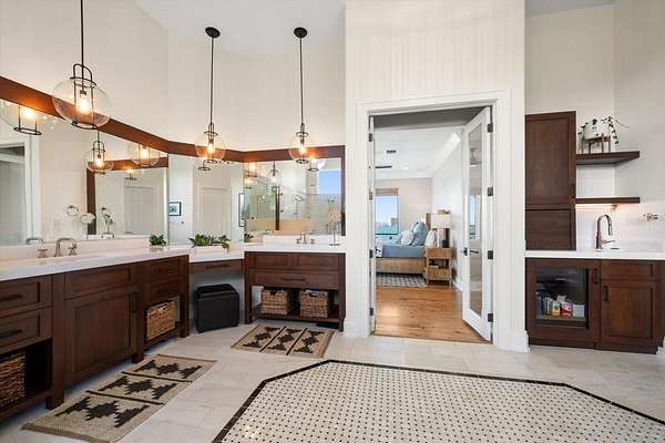 - Built-In Features, Ceiling Fans(s), Coffered Ceiling(s), Crown Molding, Eat-In Kitchen, Elevator, High Ceilings, Living Room/Dining Room Combo, Open Floorplan, Primary Bedroom Main Floor, Primary Bedroom Upstairs, Smart Home, Solid Wood Cabinets, Split Bedroom, Stone Counters, Thermostat, Vaulted Ceiling(s), Walk-In Closet(s), Wet Bar, Window Treatments