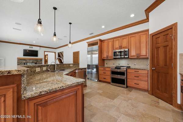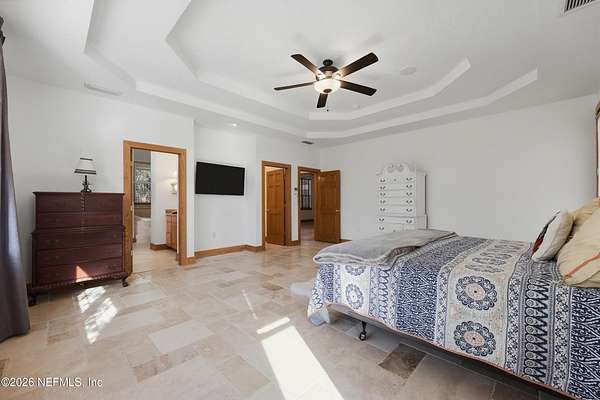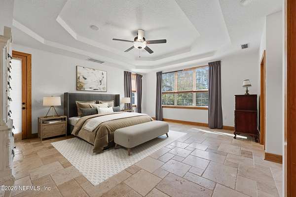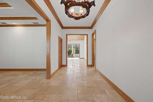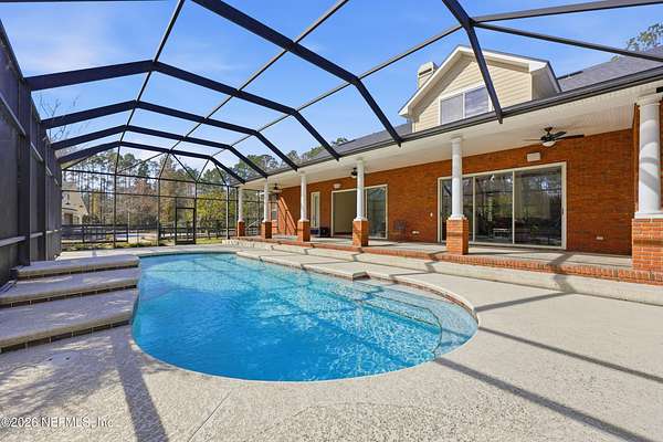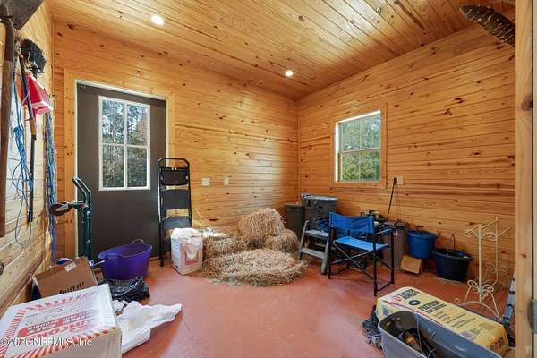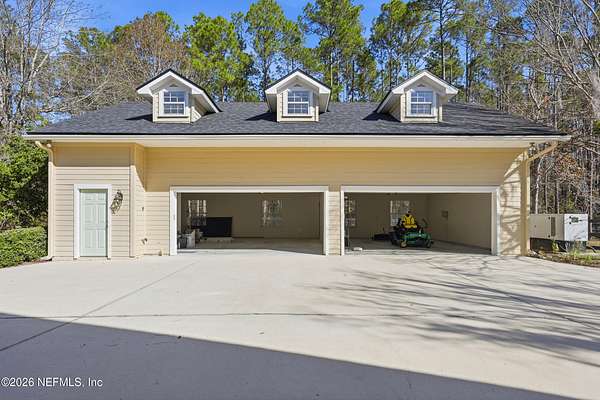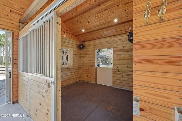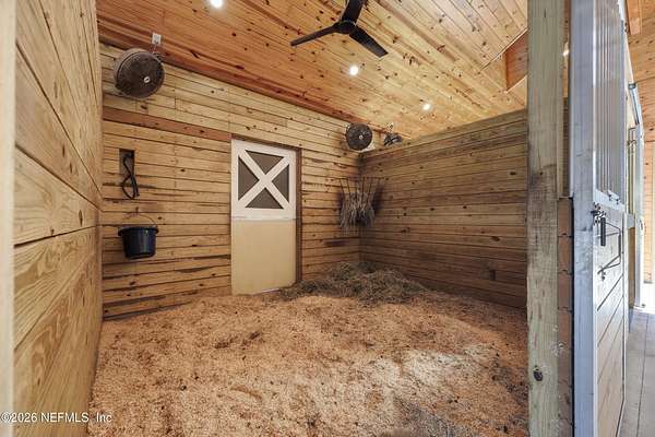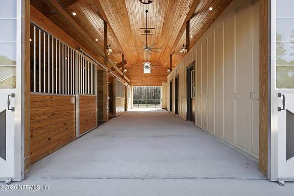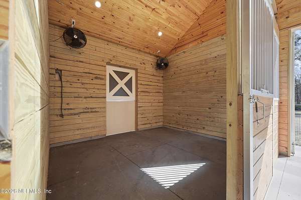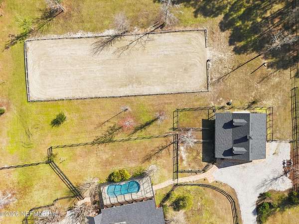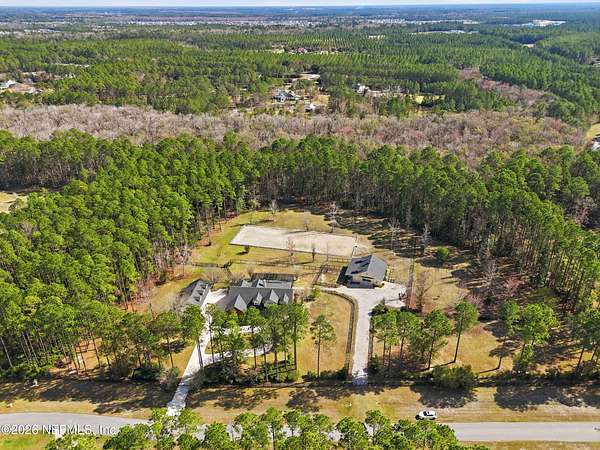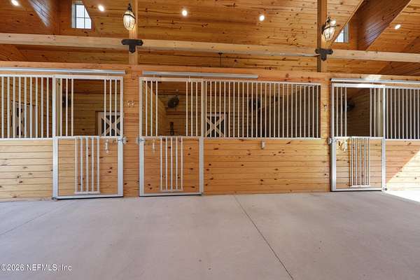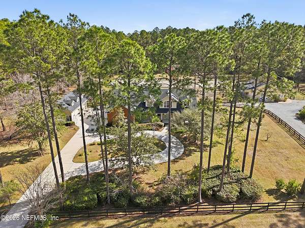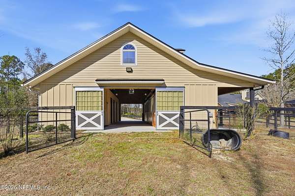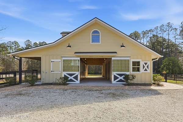 OPEN HOUSES SATURDAY & SUNDAY!! Experience refined estate living within the highly sought-after Whitelock Farms community where the very best of equestrian convenience, functionality, and lifestyle converge on 5.4 stunning acres in St. Johns county. Set behind dual gated entrances with impressive frontage along Triple Crown Lane, the property features over 5,100 square feet of living space, a heated and screened saltwater pool, 7 garage spaces, and a custom luxury barn designed with needs of both horse and rider in mind. The expansive main residence features 4 generously sized bedrooms, 3.5 bathrooms, and a versatile layout spanning over 5,100 square feet. Enjoy slow mornings overlooking your pool and pastures, with equine companions grazing, from either the main or secondary living spaces downstairs. Timeless travertine flooring and wood accents frame the interior, with a dual sided wood burning fireplace adding to the charm. The spacious downstairs primary suite and accompanying en-suite are complete with both dual vanities and separate walk-in closets. Upstairs you'll find a well-appointed loft and the remaining 3 bedrooms-one generously oversized perfect for an office, in-laws, hosting guests, bedroom/living space combination, or whatever suits your lifestyle. Outdoor living is elevated with the spacious screened enclosure and heated saltwater pool, perfect for entertaining and enjoying year-round. Anchoring the property is the newly built, custom-designed luxury barn-accessible via its own private gated entrance and drive-thoughtfully designed for both equine comfort and owner efficiency. The barn features three spacious matted stalls with individual run-outs, each equipped with dual fold-down straight yokes, individual water supply, dual fans, and ample lighting. The convenient yokes allow horses to comfortably observe activity while keeping daily care and feeding efficient. Three air-conditioned rooms in the barn offer flexible separation of tack, feed, and storage, complemented by a convenient half bath. Sliding barn doors open to an exceptionally wide center aisle and striking interior of warm pine evoking a classic equestrian aesthetic. An interior wash rack with heated water ensures year-round usability. At the rear of the barn, dual sliding doors provide quick access to a private, regulation-size dressage arena. Fully fenced and irrigated pastures are accessible from multiple points, with thoughtfully designed gate configurations allowing for complete separation or combined turnout across the entire property. Individual run-out gates can also be adjusted to expand turnout space as needed. The detached garage features 4 parking spaces across 2 garage bays, in addition to the primary residence's 3 spaces-for a total of 7 garage spaces-perfect for the car enthusiast, a home workshop, or storage. Above the detached garage spaces is a generously sized bonus room, which could function as detached in-law living, a large office, play room, or home gym-the opportunities are truly endless! Residents of Whitelock Farms enjoy access to community equestrian amenities, including maintained bridle trails, multiple riding arenas, and shared training spaces offering an immersive equestrian lifestyle surrounded by both nature and community. There are dressage, hunter/jumper arenas (fenced options with footing and jumps in large grass fields), round pen for exercise lunging, and a space to pattern barrels. Footing is regularly dragged, and trails are maintained. There is a designated path with the option to trailer to the many multi-discipline arenas. Ideally located near A-rated St. Johns County schools and just minutes from the St. Johns River for boating and fishing, as well as fine dining and local shopping, this extraordinary equestrian estate offers more than a home-it delivers a lifestyle defined by space, privacy, and sophistication.