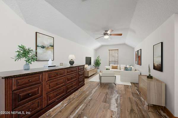 - Ceiling Fan(s), Eat-In Kitchen, His and Hers Closets, Open Floorplan, Pantry, Primary Bathroom -Tub With Separate Shower, Primary Downstairs, Vaulted Ceiling(s), Walk-In Closet(s)