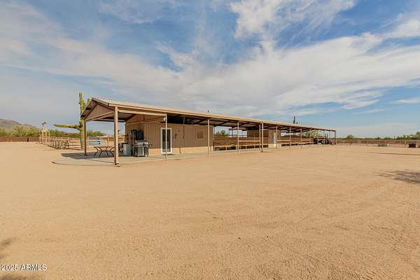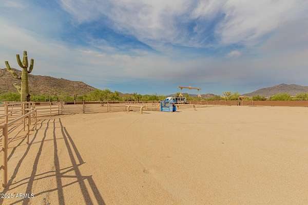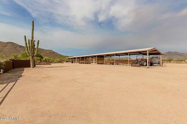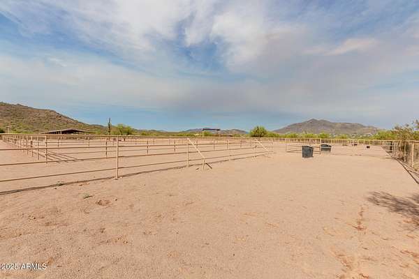 Specular Opportunity to own one of the few horse properties in this hidden gem area of the Town of Cave Creek,16 properties exist in this R-190 Desert Rural zoning area. Property offers 4.3 acres, with a Team Ropers dream full roping arena, turn back alley, cattle pens, Priefert electric Chute, 7 covered stalls w runs, numerous huge outdoor horse pens, wash rack, tack room, 200 amp electric panel. Remodeled studio style guest quarters w kitchen, shower & laundry & covered patio- Best of all seller has architectural renderings for a beautiful home+guest house. 4 RV full hook ups- new septic tank- steps from Cave Creek Regional park trails to the north, state land to south. CITY WATER! Ask agent for the list of improvements to the property- plans included ready to go