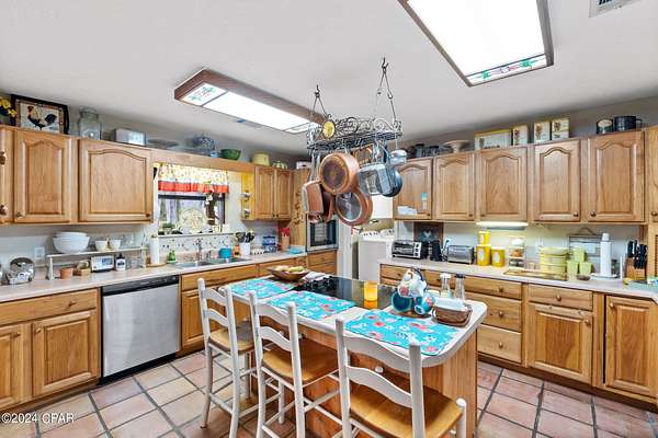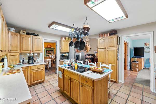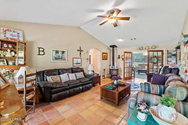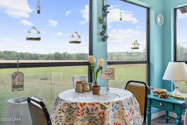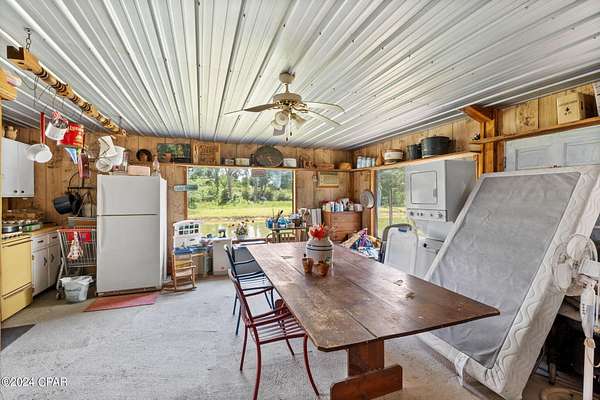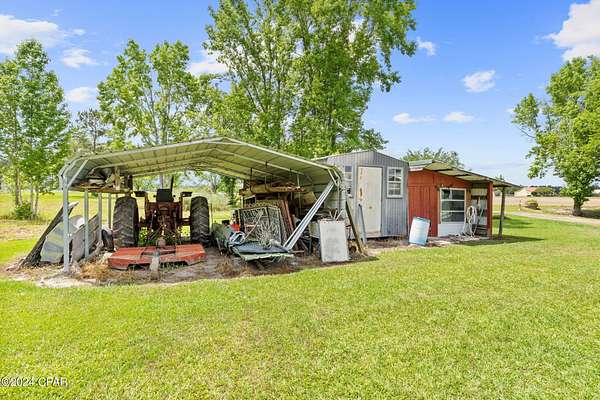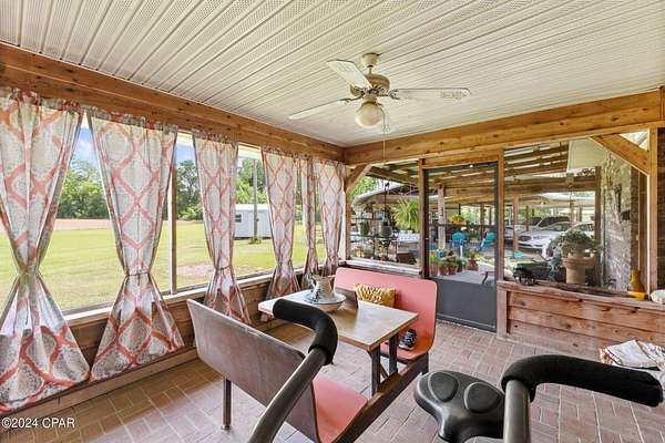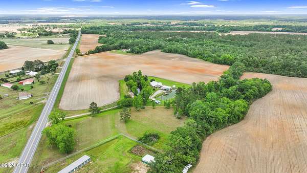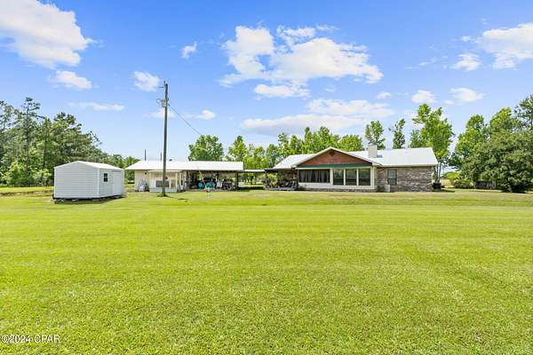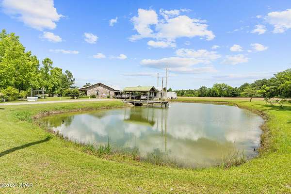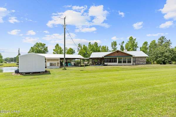 Nestled on a picturesque stretch along Highway 273 in Graceville, FL, this stunning property offers a tranquil country lifestyle with all the comforts of modern living. The home features a well-appointed 3 bedroom, 2 bathroom layout ensuring peace of mind for years to come. The heart of the home is its expansive kitchen, boasting ample cabinet storage, an island cooktop, and a breakfast bar-perfect for morning gatherings. Step into the inviting living area where a wood-burning stove adds a cozy touch, or enjoy the scenic views from the sunroom, where natural light abounds and nature's tranquility is just a glance away. Outdoor enthusiasts will delight in the property's two stocked fish ponds and an extensive front porch that runs the length of the home, offering a serene spot to unwind. For those who love to entertain, the outdoor cookhouse, complete with a full kitchen and bathroom, provides an ideal setting for family gatherings and festive occasions. The property also includes a screened back porch, a breezeway leading to a 2-car carport, and a clay tile-floored master bath with a tub/shower combo. This beautiful home, set on a paved road amidst the peaceful countryside, is a must-see for anyone seeking a blend of rustic charm and modern convenience. Come and experience the warmth and welcoming spirit of 4180 Highway 273, where every corner is crafted for comfort and every view calls you to relax and stay awhile.