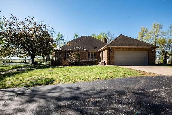 Welcome to your private slice of the countryside! This stunning all-brick home sits on 20 picturesque acres and offers the perfect blend of comfort, functionality, and breathtaking views. A paved drive leads you to the home, adding convenience and a polished first impression.Inside, you'll find an abundance of built-in cabinetry, providing both charm and exceptional storage throughout the home. Step outside and take in the scenery from the front porch. The perfect place to relax, unwind, and enjoy peaceful sunsets over the rolling landscape. The large patio offers even more space for entertaining, outdoor dining, or simply soaking in the beauty that surrounds you.For those needing workspace or storage, the 32x40 drive-thru shop is a standout feature, offering convenience and versatility for hobbies, equipment, or business use.Whether you're looking for a serene retreat, room to roam, or a property with practical amenities, this one checks all the boxes. Country living at its finest with views you'll never get tired of!