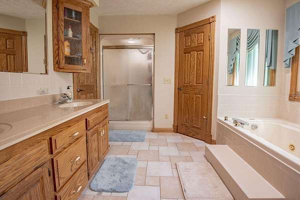 - Cathedral Ceiling(s), Crown Molding, Granite Counters, High Ceilings, Jetted Tub, Solid Surface Counters, Tray Ceiling(s), Walk-In Closet(s)