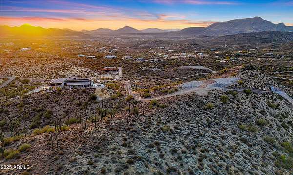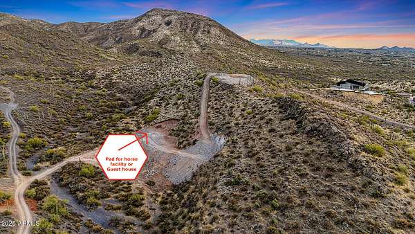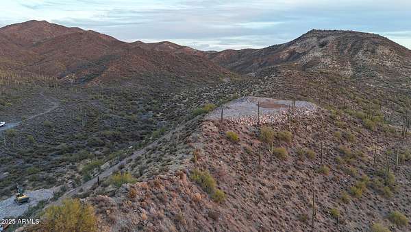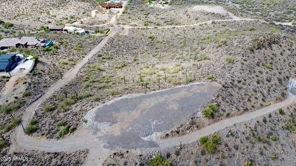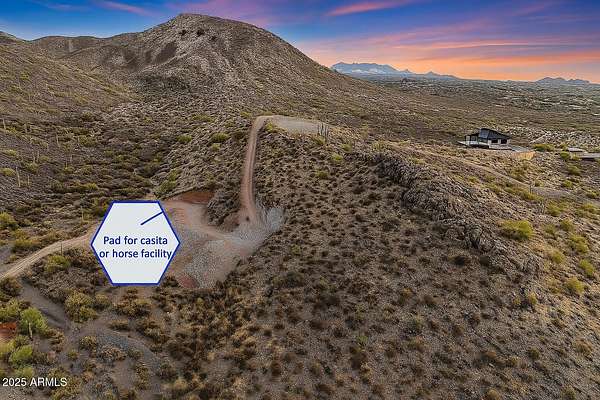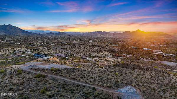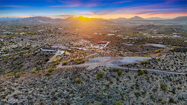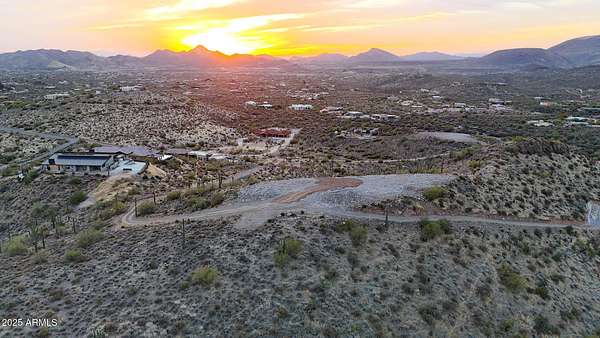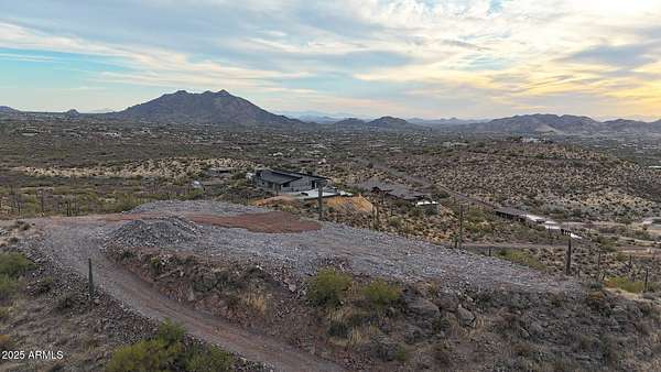Builder Ready!! Bring your plans and this 5-acre custom home site offers unparalleled 360-degree views of Black Mountain, Elephant Butte, The Continentals, and twinkling city lights. Nestled among lush desert landscapes and towering saguaros, this exclusive homesite is prepped and ready for your dream home. A secondary pad is designed for a luxury horse barn or guest house. Site prep and roadwork are done, soil & engineering reports on file-step into a once-in-a-lifetime opportunity to craft a timeless hilltop estate with extreme privacy and breathtaking vistas in every direction.