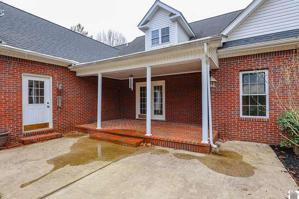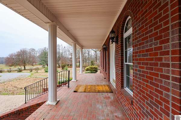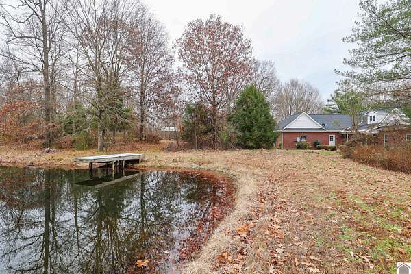 This charming 4 bedroom, 3 bath home sits on 6.58+- acres with a peaceful pond and dock, a circle drive, and a timeless brick exterior with columns and a welcoming covered front porch. The main level features beautiful wood floors, formal living and dining room with elegant windows spanning the front of the home, and French doors opening to an updated eat-in kitchen with stainless appliances, a spacious island, convenient pantry, utility room, and a full bath nearby. The cozy family room offers built-in bookshelves and a fireplace. Two large bedrooms and another full bathroom complete the first floor. Upstairs, you'll find a generous bedroom and a fourth bedroom with a private ensuite full bath. Outdoor living spaces include a spacious covered back porch and patio. The home also provides an attached 2-car garage plus a carport for extra parking or equipment storage.