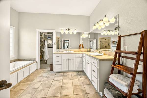 - Breakfast Bar, Central Vacuum, Granite Counters, High Speed Internet, Kitchen Island, Linen Closet, Open Floorplan, Pantry, Primary Downstairs, Smart Thermostat, Soaking Tub, Tile Shower, Vaulted Ceiling(s), Walk-In Closet(s), Wired For Sound