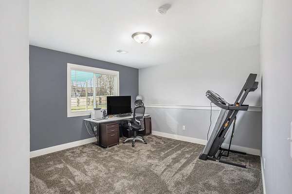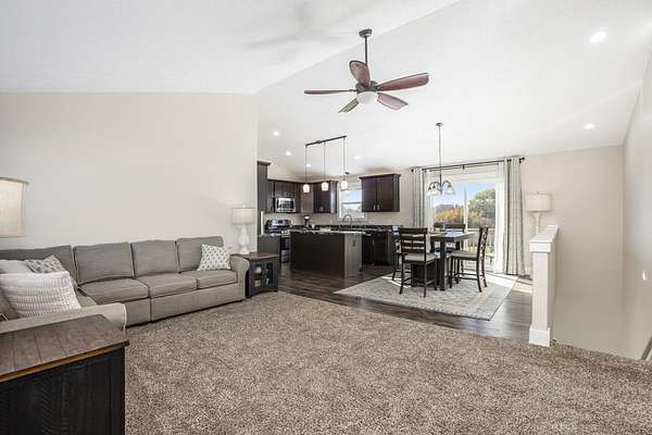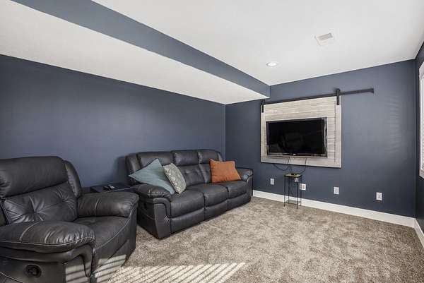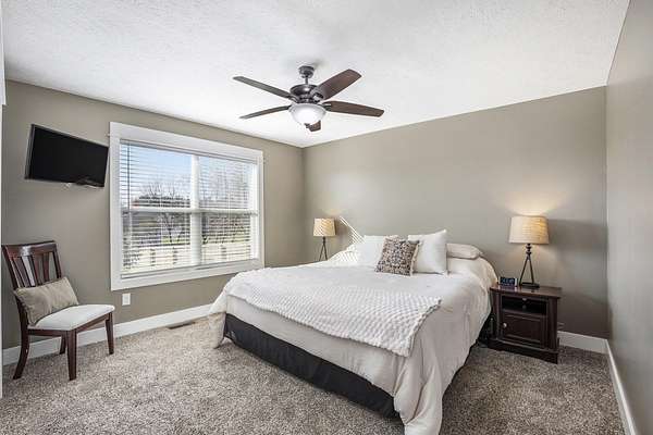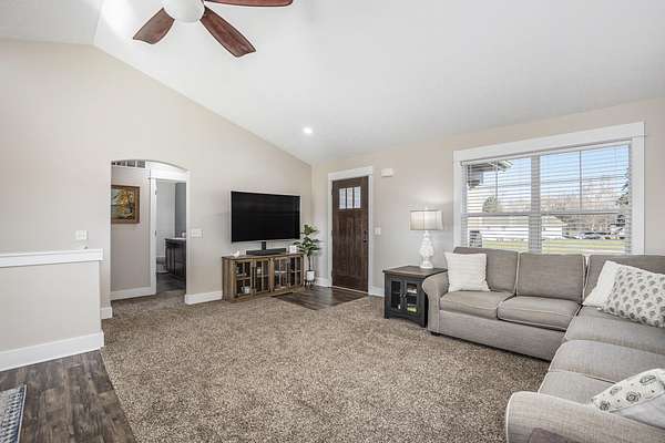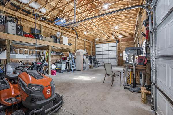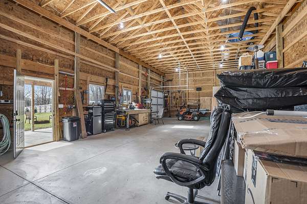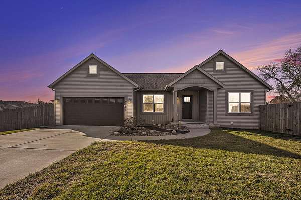 Discover a perfect blend of space, comfort & modern features in this beautifully maintained 2017 ranch home offering 5 bedrooms & 2.5 baths on 1.5 acres. Vaulted ceilings greet you upon entry with plenty of natural light. Main level includes 2 bedrooms, full bath & guest bath. (Primary bedroom & laundry conveniently located on main level.) Spacious kitchen has 36'' cabinetry, large 6-foot island, newer fridge & pantry cabinet w/roll-out shelving. Large dining area perfect for entertaining. Finished lower-level walkout provides additional living space with rec room, 3 bedrooms & full bath with step-in shower. One bedroom currently used as a media room includes built-in surround sound, ideal for home theater or gaming room. Just outside sliders is extended patio to enjoy your morning coffee. Outdoor amenities; deck, fenced backyard, POLE BARN featuring 12' door, perfect for storing RV, boat, trailer & toys! Backyard also features 2nd patio area by pole barn, fire pit & fruit trees.
