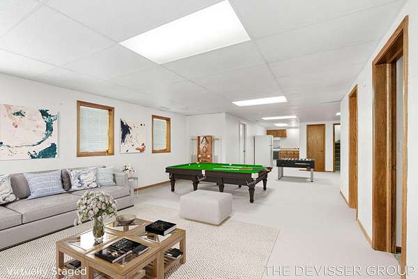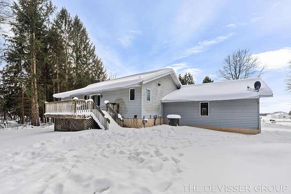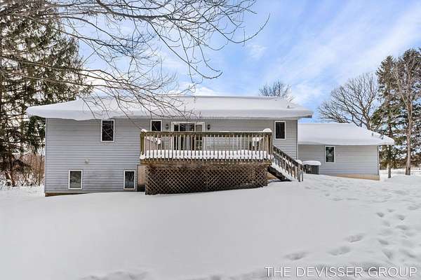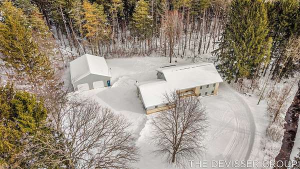 Welcome to this well-located ranch home in Dorr, Michigan, situated on approximately 5 wooded acres offering privacy and space. The property includes a 2-stall attached garage and an approximately 30x40 barn, providing ample storage and versatility. The setting offers a peaceful feel while remaining conveniently close to nearby amenities. Recent updates include a newer furnace and central air conditioning, along with a roof that was replaced just a few years ago. The finished basement adds additional living space and includes a kitchen, living room, dining area, and a full bathroom, offering flexibility for extended living or guest use. The property features significant road frontage, which may provide the potential for future land division. Buyers are advised to verify all zoning, land use, and split possibilities with the township and complete their own due diligence. This home has a lot of potential with new flooring and some paint you'd have a whole new home.