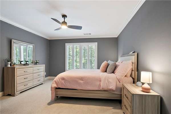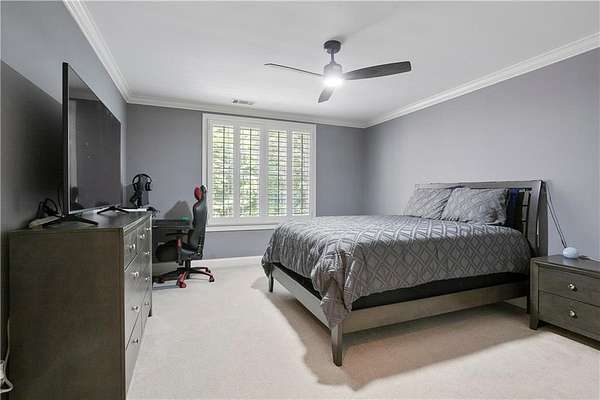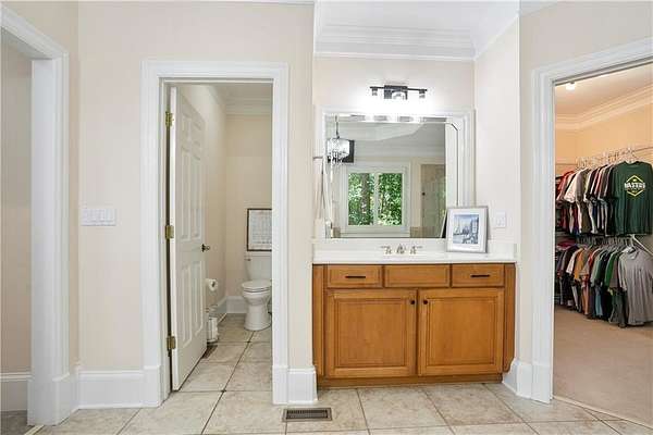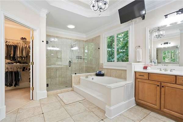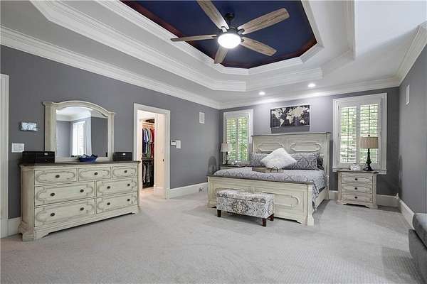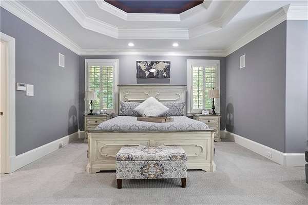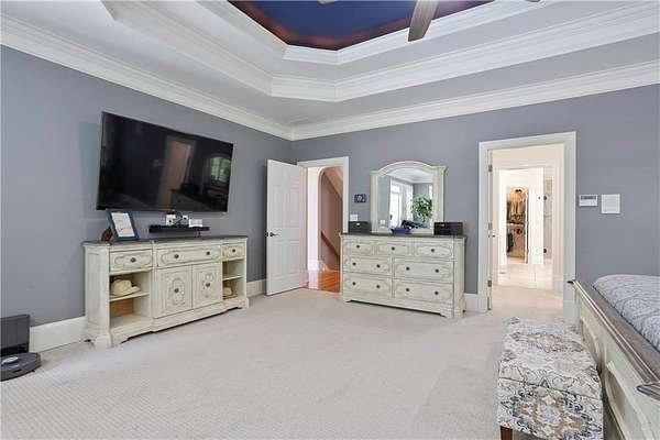 - Beamed Ceilings, Coffered Ceiling(s), Crown Molding, High Ceilings 10 ft Upper, His and Hers Closets, Sound System, Walk-In Closet(s)