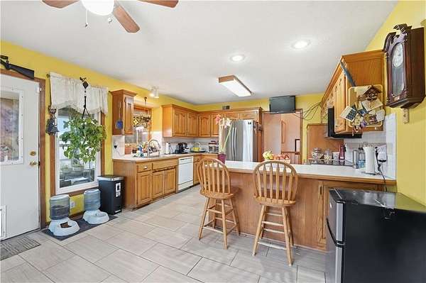 This 3-bedroom, 2.5-bath ranch sits on 10 beautiful acres in the highly sought-after Wellsville School District and offers an exceptional opportunity for homesteaders, hobby farmers, or buyers seeking space and self-sufficiency. The home features a solid ranch-style layout with good bones, a finished basement with a bar and half bath, and major improvements already completed, including a roof replaced in 2017, brand-new windows in 2024, and solar panels installed in 2024, delivering excellent energy efficiency and long-term utility savings. The land is fully fenced and cross-fenced, ideal for livestock or rotational grazing, and includes multiple outbuildings that support a true homestead lifestyle. A 30' x 50' shop with 8' garage doors and a partial concrete floor provides ample space for equipment, projects, or storage. The back portion of the barn is configured for poultry with three pens, and a 12' x 20' chicken house adds even more functionality. Established flower beds with daylilies and irises, along with apple and pear trees, enhance the property's charm and productivity. With acreage, infrastructure, energy-efficient upgrades, and endless potential, this homestead-ready property is priced to sell and presents a rare opportunity to create a personalized rural lifestyle in an outstanding location.