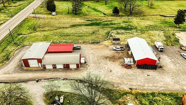 Discover the perfect blend of functionality and opportunity with this beautiful, level 6-acre tract. Whether you're looking to build your dream home, start a home-based business, or create a working farm, this property is ready to bring your vision to life. The property features a 30x60 metal building featuring heating and cooling. Inside, you’ll find a studio apartment upstairs complete with a full bath, while the main level offers an office, full kitchen, half bath, and stackable washer/dryer setup—perfect for convenience and flexibility. A 14’ garage door provides easy access for large equipment or vehicles. There is an attached 28x58 three-bay garage, a detached five-bay carport, a small storage shed, and a spacious 30x30 greenhouse with water access. Large gravel parking lot. Majority of the property is fenced. This property already features a poured and plumbed concrete slab for a 2,812 sq ft home, designed for 3 bedrooms, 3.5 baths, an office, and a bonus room. The septic system is already in place, saving you time and expense. Blueprints are available. Conveniently located with easy access to nearby communities, this property offers both privacy and accessibility. With endless possibilities, this is a rare opportunity to own a truly versatile piece of land.