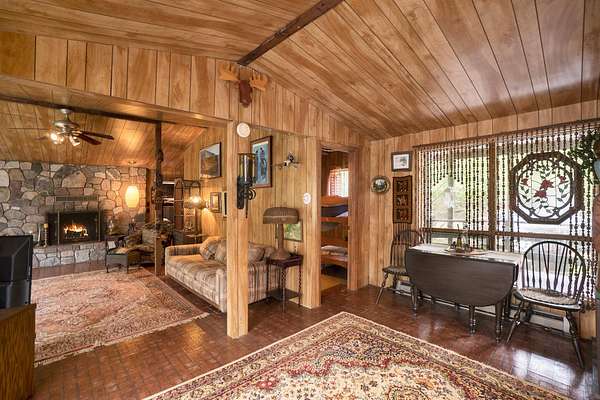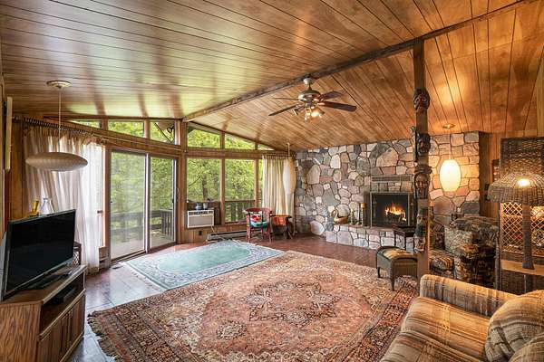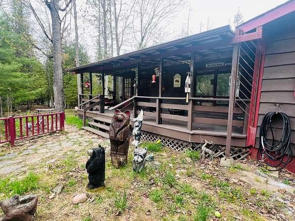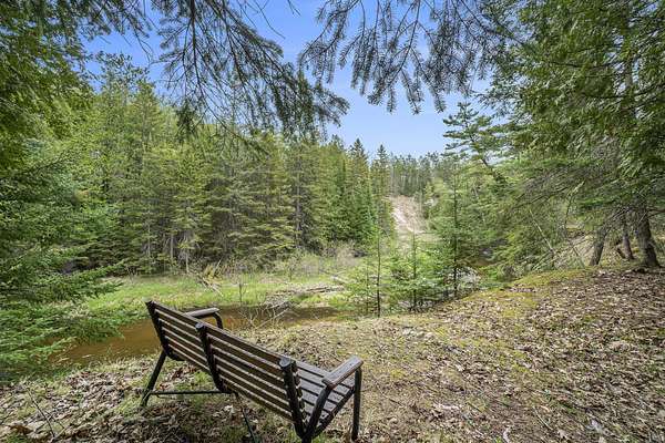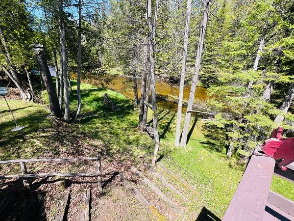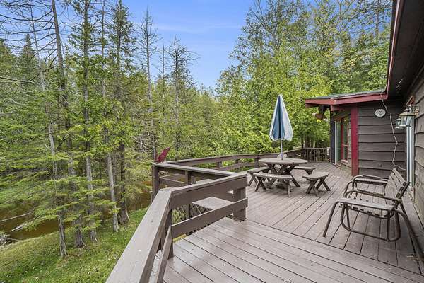 PRICED REDUCED! SELLERS VERY MOTIVATED! Nestled on nearly 8 acres of pristine wilderness, this remarkable property offers unparalleled seclusion alongside a picturesque stretch of approximately 675 feet of award-winning blue ribbon trout stream. The east side borders the Pigeon River, ensuring breathtaking views protected by the Little Travers Bay Conservancy forever. Imagine evenings spent on your front deck, just steps from the tranquil waters, listening to nature's symphony. Perfect for fishing, canoeing, kayaking, or tubing, this setting is ideal for creating many memories with family and friends. Potential family compound or VRBO, this charming 2-bed, 1-bath home features a walkout basement leading to a covered/screen porch for entertainment. BRAND NEW SEPTIC TO BE INSTALLED. Also has nearby access to 2 small lakes and 1,000's of acres of state lands. Recent updates include a new steel roof (2022), modern appliances, and a furnace (2017), ensuring comfort and peace of mind. Embrace the opportunity to make lasting memories in this serene haven. Seller is planning to install a new septic prior to closing.