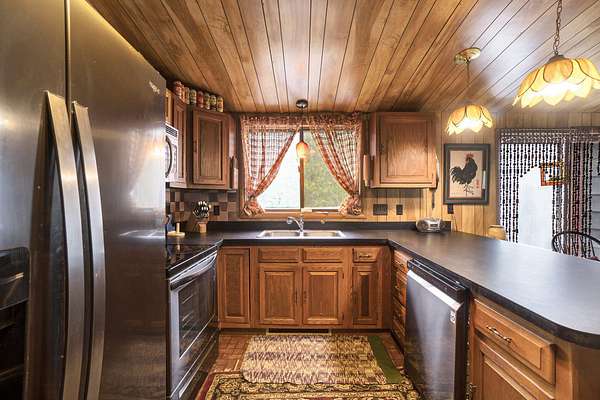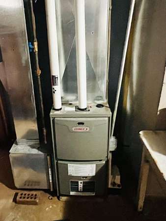 - Forced Air, Natural Gas, Wood, Wood Stove