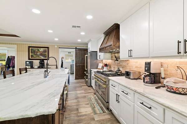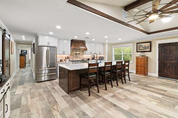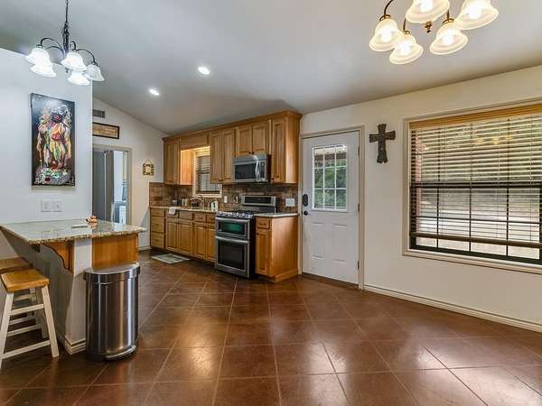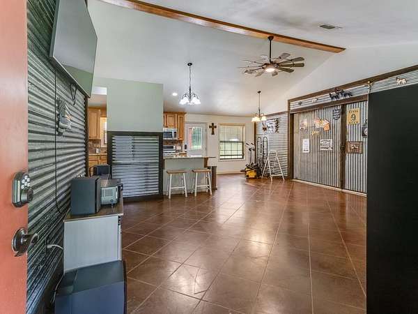 PRICE IMPROVEMENT!! Check it out! Welcome to a rare & versatile property featuring TWO beautifully done homes on 8.2 unrestricted acres, complete with a shop, pool for multi-generational living, income potential, or home-based business! The main home is a stunning 3-bedroom, 2-bath, updated from head to toe. Step inside to an open-concept living space, vaulted ceiling, wood-look tile flooring & split-bedroom layout. This kitchen is a showstopper w gorgeous counters, a large island & seamless flow into the living room, perfect for entertaining. Cozy up by the fireplace surrounded by custom built-ins and enjoy the generous family-sized layout. The 2nd residence is a charming 1/1 bath barndo-style guest house-ideal as an Airbnb, man cave, guest quarters, or home office. Out back is sport pool, just the right size for relaxation & entertaining. Large Shop, Rv drive through, 50 amp & storage! MOVE IN READY.