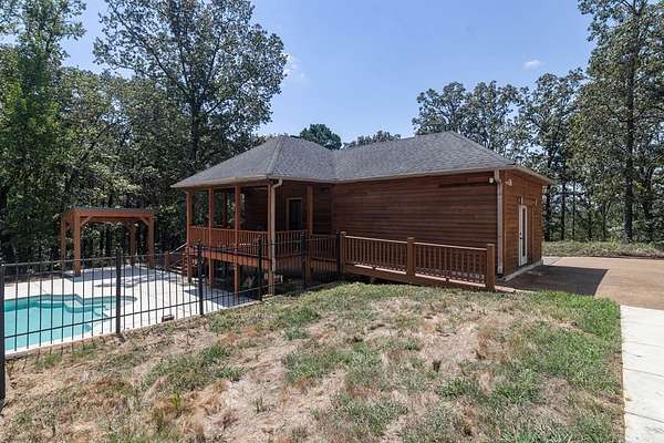 Est $10,513/mo7.6 private acres with beautiful outdoor living. Fully Remodeled with modern finishes and updates throughout. Main Home: 4500, 7 bedrooms, 4.5 baths. Main level: Primary bedroom with pine hardwood floors and two additional bedrooms. Upstairs: 4 Bedrooms plus bonus room with wet bar, and additional laundry. New Appliances. Recently Redone Gunite Pool. Guest House: 1200 sq ft, 3 bedrooms, 2 baths, full kitchen with granite countertops. Pool House: 1 bedroom, 1 bath, kitchenette. 30x40 Shop with bath, laundry, kitchenette. Custom Treehouse. Expansive Porches for relaxing and enjoying the views.