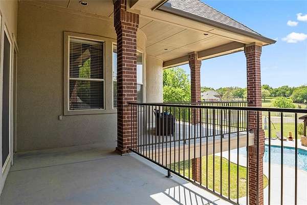 LOCATED IN ARGYLE ISD & NEAR LIBERTY CHRISTIAN! This luxury home is absolutely amazing and has all of the Argyle must-haves! The backyard oasis features a huge party pool with diving rock & waterfall, a covered outdoor living space with a wood burning fireplace, has a fire pit for cooler nights, and still has space for your horses! A small barn and cross fencing provide the perfect space. The large covered outdoor patio is perfect for dining and is plumbed for gas. Inside, a second downstairs bedroom with an en suite bath and a private entrance suits guests or multi-generational living. Upstairs, the media room has a separate space for a game room or dining room and includes a wet bar. An added bonus: this home has a lightning protection system!