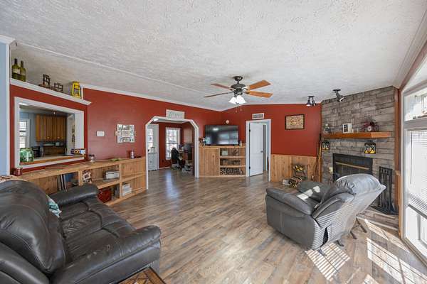 Situated on 3 unrestricted acres in Madison County, this well-maintained 3 bedroom, 2 bathroom home offers space, privacy, and versatility -- all just 20 minutes from the heart of Jackson with no city taxes. Inside, you'll find vaulted ceilings, custom built-ins throughout, new luxury vinyl flooring (2023/2024), fresh paint, and updated decking. The home is on a permanent foundation and includes a 2023 structural engineer report, making financing options straightforward and accessible. The exterior is fully fenced with a gated entrance and includes a chicken coop, above-ground pool, covered back deck with outdoor sink, and an external storm shelter. A walk-in (20x30) shop provides ample storage and workspace, and the attached carport offers additional covered parking. The large, mature trees add plenty of shade and privacy around the property. Enjoy the upcoming spring days relaxing on the large covered back porch overlooking the above ground pool. The entire property is fenced, creating plenty of space for all of your animals! If you're looking for unrestricted acreage with functional upgrades and move-in-ready condition, this property checks the boxes.