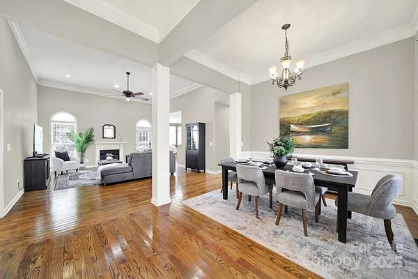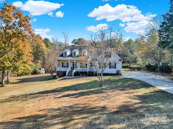 Welcome to this move-in ready home tucked away in Richards Landing on a 1.77 acre cul-de-sac lot. This property brings space, privacy & a quiet setting still close to city life with the interstate nearby for a quick commute to Charlotte or Columbia. Notice the curb appeal as you pull in the driveway with mature landscaping & a rocking chair front porch. Step inside to find a formal entry with a powder room off to the left & to the right you'll find an attractive formal dining area. Follow the recently polished hardwoods into the inviting living room with cathedral ceilings & a gas log fireplace. The open kitchen checks every box with a breakfast bar, eat-in area, pantry, granite countertops & stainless steel appliances. The main-level primary suite is your personal escape, complete with a garden tub, separate shower, dual sinks, & ample-sized walk-in closet. Two additional bedrooms sit on the opposite side of the home with another full bathroom. Head upstairs to a freshly painted bonus room with an additional room that could easily flex as a 4th bedroom or office (*septic permit is for 3 bedrooms) & a beautifully tiled full bathroom. Don't overlook the immense amount of storage & closet space throughout the home. Step out of the back door onto the deck overlooking a fenced section of the backyard with raised garden beds & plenty of room to play. Take note there is an existing shed on the left side of the property for your yard tool storage & a side-facing 2 car garage at the driveway.