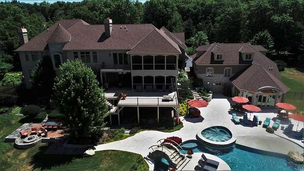 Coming Soon! Prepare to be captivated by this extraordinary estate in Bull Valley, offering resort-caliber living on nearly 5.5 breathtaking private acres backing to conservation area. Surrounded by rolling hills, equestrian estates, scenic riding trails, and open farmland, Bull Valley is cherished for its bucolic beauty and relaxed sophistication offering an idyllic retreat that balances privacy with everyday convenience. This magnificent residence offers over 11,000 sq. ft. of living space boasting exceptional craftsmanship, 6 bedrooms, 6 full and 5 half-baths, exquisite millwork, and high-end finishes throughout. A full walkout lower level with radiant heated floors expands the living space with a private theater, fitness studio, and an impressive indoor sports court tucked beneath the attached garage. For those who work from home, a dedicated first-floor office suite - complete with conference room, private entrance, and bath - provides a refined and functional executive environment. Outdoor living rivals the finest resorts. The spectacular in-ground pool showcases cascading waterfalls, a dramatic slide, spa hot tub, and a charming bridge leading to a sun deck with its own firepit. A separate pool house with kitchen and two baths elevates entertaining, while expansive decks, dual screened porches, multiple patios, and a starlit firepit create unforgettable gathering spaces. Car enthusiasts will appreciate the 3-car attached garage complemented by a 3-car detached garage, ideal for collectors, recreational vehicles, or hobby pursuits. Ideally located near the renowned equine trails of Boone Creek Fen, charming downtown Woodstock and Crystal Lake, convenient Metra access, and just 30 minutes from Lake Geneva, this remarkable estate offers a rare opportunity to experience luxury living at its finest.