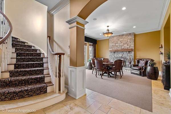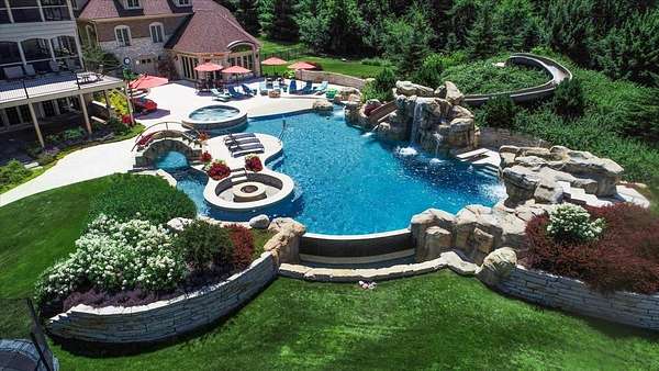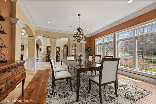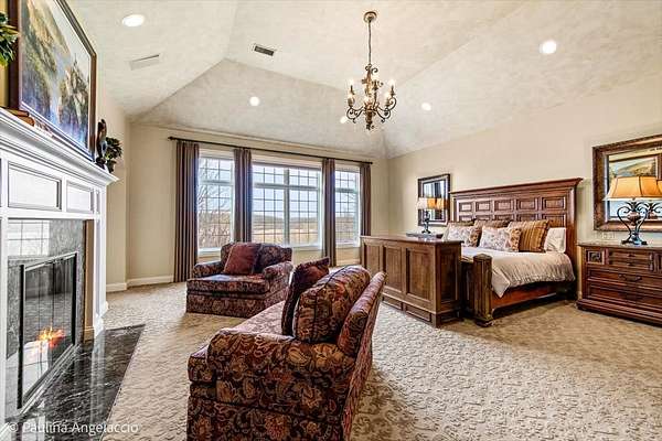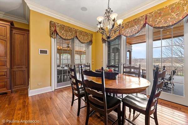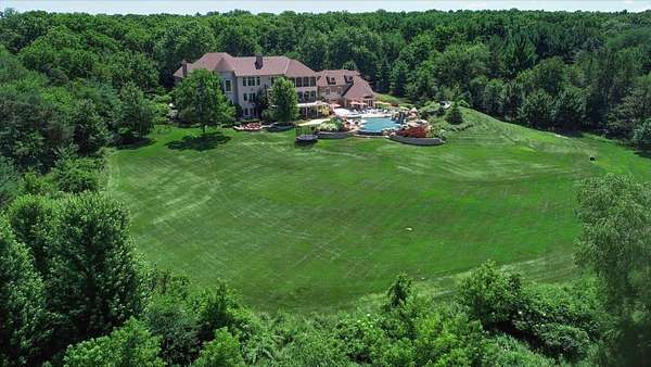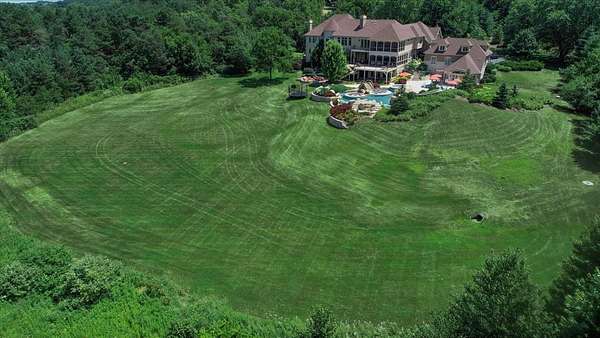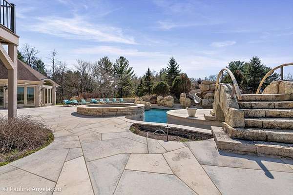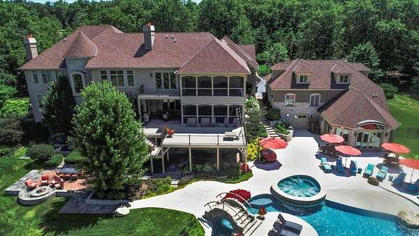 Prepare to be captivated by this extraordinary Bull Valley estate, where resort-caliber living meets unparalleled natural beauty. Set on over five private, breathtaking acres backing to the 608-acre Boone Creek Conservation Area, this one-of-a-kind property showcases sweeping panoramic views and a setting of complete serenity. Surrounded by rolling hills, equestrian estates, and scenic riding trails, Bull Valley is cherished for its bucolic charm and understated sophistication, an idyllic retreat offering both seclusion and convenience. This magnificent residence spans over 14,000 square feet of exquisitely finished living space, thoughtfully designed for both grand-scale entertaining and refined everyday living. Exceptional craftsmanship is evident throughout, with six bedrooms, six full and five half baths, four fireplaces, intricate millwork, arched passages, and designer finishes elevating every space. A grand foyer introduces elegant formal living and dining rooms, while the spectacular chef's kitchen features dual islands, premium appliances, and a sunlit breakfast room with seamless access to the screened porch and expansive deck, creating effortless indoor-outdoor living. Inviting gathering spaces include a warm, sophisticated family room, a secondary office, and a stunning screened porch with a tongue-and-groove ceiling and slate flooring, perfectly positioned to take in the surrounding landscape. For those who work from home, a dedicated first-floor executive office suite with private entrance, study, conference room, and bath offers a refined and highly functional workspace. The upper level is anchored by a luxurious primary suite retreat, with fireplace, private sitting room with wet bar, spa-inspired bath, an expansive walk-in closet, and private balcony and screened porch. Four additional ensuite bedrooms, a versatile bonus suite ideal for guests or au pair accommodations, and a second laundry room complete the level. The walkout lower level is nothing short of exceptional, featuring radiant heated floors, a game room, secondary family room with wet bar and wine cellar, a private theater with stadium seating for twelve, a fitness studio, and a remarkable indoor sports court with soaring 12-foot ceilings. Outdoors, the estate rivals the finest luxury resorts. A spectacular in-ground pool with three cascading waterfalls, dramatic slide, lazy river, and spa is complemented by a charming bridge leading to a sun deck with firepit. A fully appointed pool house with kitchen, changing area, and baths enhances entertaining, while multiple decks, dual screened porches, expansive patios, an outdoor shower, and a starlit firepit create unforgettable gathering spaces. Car enthusiasts will appreciate the six car capacity with both attached and detached garages, plus a carport with additional parking, ideal for collectors and hobbyists alike. Ideally situated near the renowned trails of Boone Creek Fen, the charming downtowns of Woodstock and Crystal Lake, convenient Metra access, and just 30 minutes from Lake Geneva, this remarkable estate represents a rare opportunity to experience luxury living at its absolute finest.