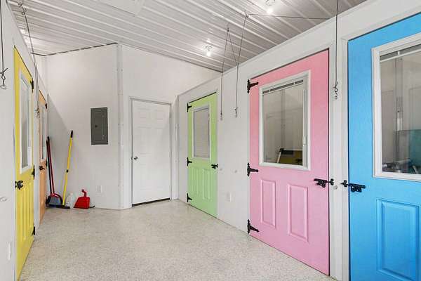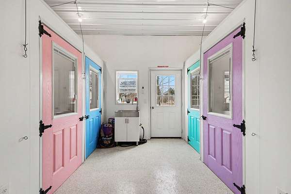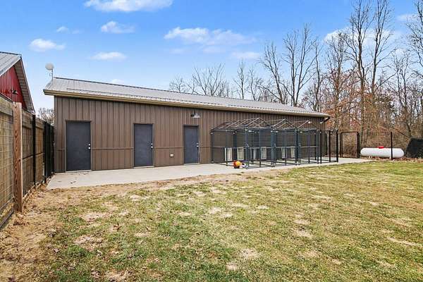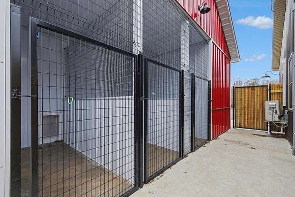 Turnkey canine facility on 25.8 acres ideal for boarding, breeding, training, grooming, rescue, or hobby use--paired with a lovely property perfect for hunting enthusiasts. This diverse acreage is alive with wildlife, including deer, rabbit, and turkey, and features thoughtfully planned food plots, established hunting areas, and scenic trails that wind through a mix of open fields and natural cover--creating an exceptional recreational retreat. The property features 7 Gator Kennels with indoor/outdoor access, including 7 private, room-style kennels designed with no direct line of sight, each with covered outdoor runs. Built for durability and safety, the facility includes insulated doors and full-height paneling for secure, escape-resistant housing. The kennel building offers epoxy and polished concrete floors with drains, a professional-grade dog wash, separate laundry room, and a welcoming lobby with space for an office, counter, and coffee bar. An additional 10x10 room with exterior access provides flexible use. Expansion potential exists in the brown building. A large indoor training area (garage), two fenced dog yards, and the property's extensive trail system offer ample room for exercise, training, and exploration. The beautiful barndominium with studio-style living quarters features a Murphy bed, granite countertops, a spacious kitchen, and a large bathroom with double vanity--perfect for on-site living, guests, or caretaker accommodations.