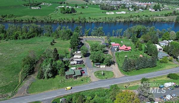 Nestled along the picturesque Clearwater River, this 3 acre parcel offers a harmonious blend of residential comfort and recreational opportunity. Charming log-sided home. The 2BR/1BA residence lower level with 1,456 sq ft features hardwood floors, vaulted T&G pine ceilings and a handcrafted rock hearth by a local stonemason. The kitchen offers rustic elegance with granite counters and a propane range. Enjoy peaceful views from the upper river view deck. Upstairs is a 744 sq ft 1BR apartment with a separate entry. Kamiah's mild four-season climate supports lush lawns, a dedicated garden space, and mature trees. Adjacent 2.5-acre RV park with 23 full-service sites, bathhouse, laundry, 1,200 SF shop, 35 gpm well, 4 septic systems, and a turnkey food trailer. Ideal for full-time living with income potential or a private riverfront retreat. Recreation abounds with fishing, hunting, rafting, and hot springs nearby. This property seamlessly combines comfort, opportunity for re=development, and the tranquil beauty of riverfront living.