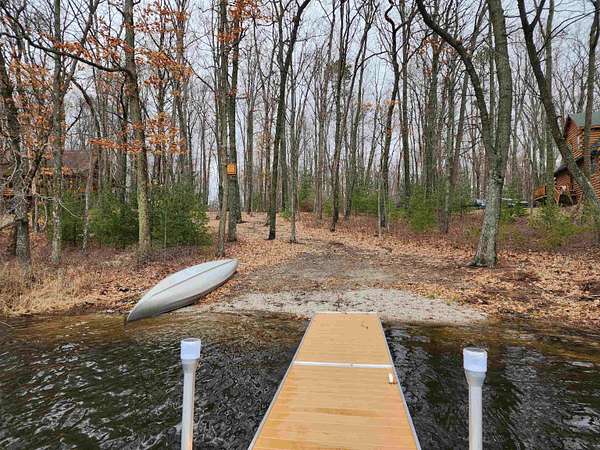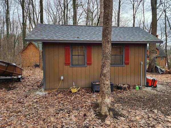 Est $1,097/moWhat a great opportunity to own this .80-acre wooded parcel with 106 feet of frontage on beautiful all-sports Sutherland Lake! This charming property features an Amish-built bunkhouse with electric, along with a convenient camper hookup—perfect for weekend getaways or seasonal camping while you plan your future dream home. Enjoy the peaceful setting with plenty of space to relax, fish, and take in the waterfront views. Sale includes a fishing boat with trailer and dock, making it easy to start enjoying lake life right away. Please note: seller will be removing all personal items inside the bunkhouse, attached shelving, small wood shed, two bat houses, planter boxes, pallets, farm cart, and canoe.