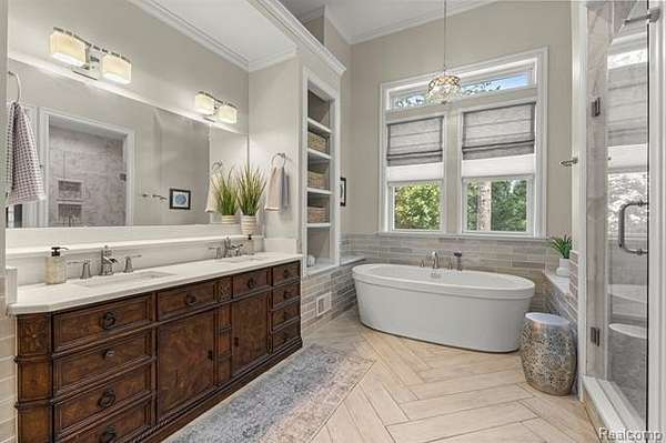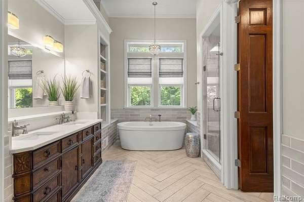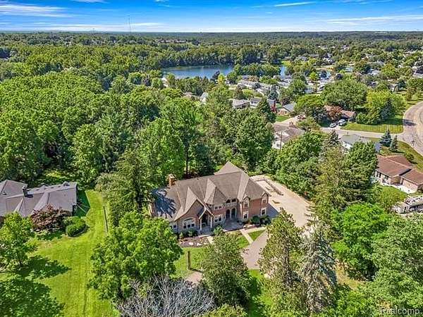 Custom-built estate on 1.76 acres in Northville's prestigious 8 Mile Corridor! Set back in a natural wooded setting with brick & limestone exterior, this one-of-a-kind home offers A Timeless European feel throughout. Including a limestone fireplace, mosaic wood floors, 14' ceilings, and custom ceiling detailing. Spacious first-floor primary suite + 2 upper ensuite bedrooms (one with private balcony). 2,100 sq.ft. Apartment includes full kitchen, bath, dorm-style bedroom & expansive game/gathering space. Hardwood floors throughout. 6 garage spaces. Energy-efficient with 3 furnaces & A/C units plus a ceiling heat circulation system. Partially finished walkout basement with full bath. Award-winning Northville Schools. Minutes to downtown, Meadowbrook Country Club, parks, and major freeways. Truly a rare gem with luxury, location, and lifestyle!