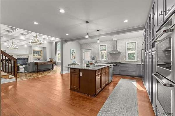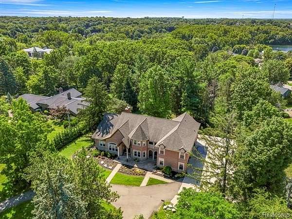 Custom-built estate on 1.76 acres in Northville's prestigious 8 Mile Corridor! Set back in a natural wooded setting with brick & limestone exterior, this one-of-a-kind home offers A Timeless European feel throughout. Including a limestone fireplace, mosaic wood floors, 14' ceilings, and custom ceiling detailing. Spacious first-floor primary suite + 2 upper ensuite bedrooms (one with private balcony). 2,100 sq.ft. Apartment includes full kitchen, bath, dorm-style bedroom & expansive game/gathering space. Hardwood floors throughout. 6 garage spaces. Energy-efficient with 3 furnaces & A/C units plus a ceiling heat circulation system. Partially finished walkout basement with full bath. Award-winning Northville Schools. Minutes to downtown, Meadowbrook Country Club, parks, and major freeways. Truly a rare gem with luxury, location, and lifestyle!