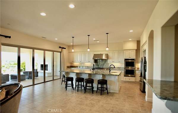 Welcome to this Groves Estates house sits in the splendor of the Temecula Wine Country, home to some of the area's best wineries. This house features 5 bedrooms plus library and loft; walk-in wet bar; 4.5 baths; and 4-space garage and workshop area, which measures 1,500 sq. ft. there are 3 bedrooms on the first floor and 2 bedrooms with Jack-and -Jill bathroom upstairs. Also the upstairs loft and patio for you to enjoy your cozy life. Design details include: Stunning LaCANTINA bi-fold doors that open to the covered outdoor patio with fireplace. Stunning view to the mountains and valleys. The kitchen in this home includes custom cabinets, upgraded beautiful marble countertop island with veggie sink, and 2 dishwashers. The staircase has custom wrought iron balusters, and maple kickboard and skirt board. This ideal location offers country charm, majestic beauty and metropolitan conveniences. Surrounded by vineyards and their tasting rooms.