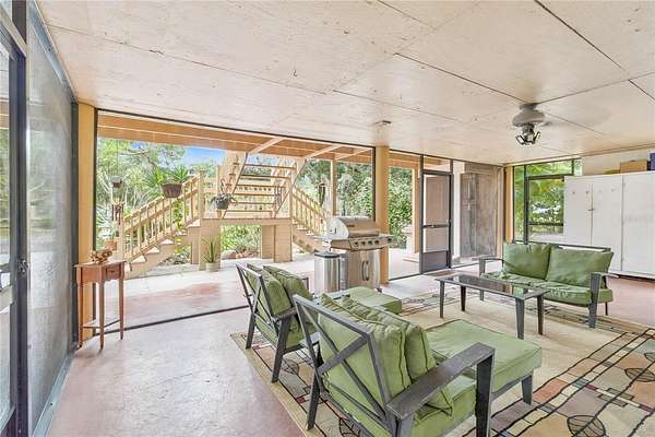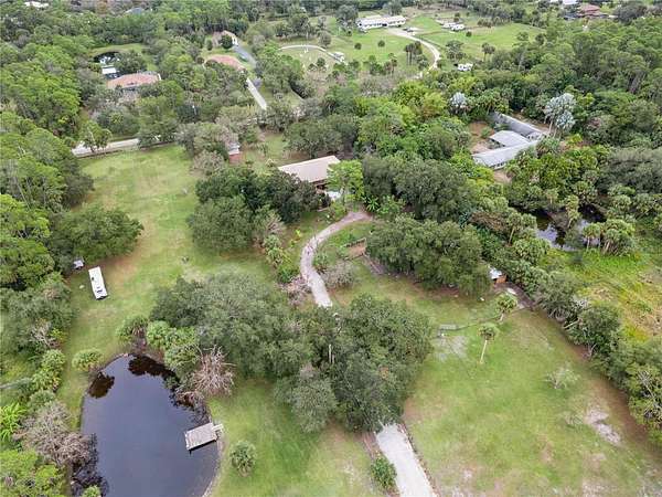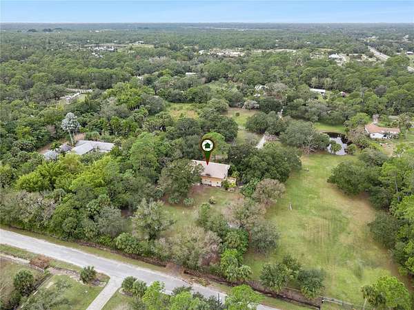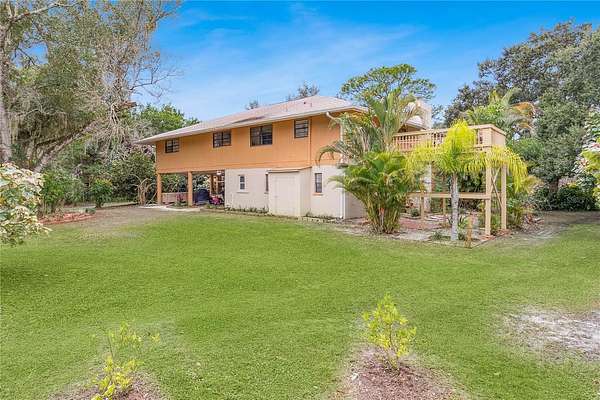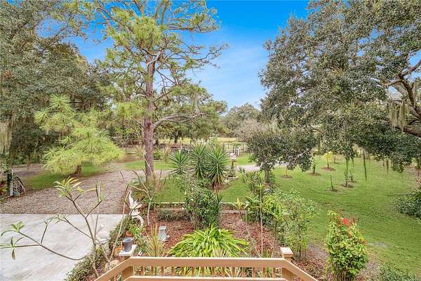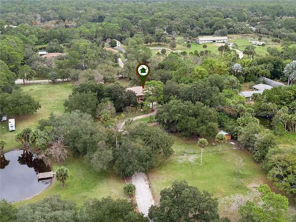 This is a one-of-a-kind property you have to see in person to take in all that it has! A Beautiful private estate where you will feel like you are on an exotic vacation year-round, framed by magnificent granddaddy oaks, lush landscaping, and exceptional natural privacy, offering a unique slice of Old Florida on 2.4 acres. This two-story home offers 4,332 total square feet with 2,312 square feet of living area, featuring 5 bedrooms, 3 bathrooms, and covered parking beneath the home for up to 4 vehicles. Featuring a private and independent entrance, the lower level provides ideal space for an in-law suite, home office, gym, workshop, or flex space. Property is zoned Agricultural with an impressively low annual premium of approximately $2,700. The property includes a four-stall horse stable with electric, a chicken coop with 11 hens producing approximately 4 dozen eggs weekly, a 10' x 20' shed, optional goats, and several tropical fruit trees. Bring the toys! plenty of room for RVs, boats, trailers, equipment, and livestock. The property offers both front and rear access and potential for an additional residence (buyer to verify).