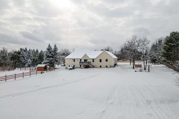 Welcome to 4191 Union Street in Levant aEUR" a private country retreat offering space, comfort, and versatility on 6.95 beautiful acres, just 12 miles from town. This expansive 2,798 sq ft home is thoughtfully designed for easy one-floor living, featuring three well-proportioned bedrooms and 2.5 baths. The primary suite is a true retreat, complete with a spacious private ensuite featuring a jetted soaking tub, separate stand-alone shower, and double vanities aEUR" creating a spa-like escape at the end of the day. The additional bedrooms offer flexible space for family, guests, or home office needs. At the heart of the home, bright and open living spaces invite both everyday comfort and effortless entertaining, all set against peaceful rural surroundings. A standout feature is the bonus room above the attached two-car garage aEUR" ideal for a media room, home gym, office, or guest suite. Equally impressive is the expansive lower level, which truly sets this home apart. The large partially finished basement offers incredible versatility, featuring a built-in bar area ideal for hosting gatherings, game nights, or casual entertaining. With generous open space and double doors providing easy exterior access, this level is perfectly suited for a workshop, hobby space, gym, or additional storage for equipment and recreational vehicles. Whether you envision a home entertainment zone, creative studio, or future finished living space, the basement provides a rare opportunity to customize to your needs. Outside, enjoy the privacy and freedom that nearly 7 acres provides. A paved driveway leads to the home, while a second gravel driveway offers excellent space for storing boats, campers, ATVs, or other toys. The expansive land invites outdoor living, recreation, and future possibilities aEUR" all in a peaceful country setting with the convenience of being minutes from town. With the perfect blend of space, privacy, functionality & convenience, could this be your Next Home?