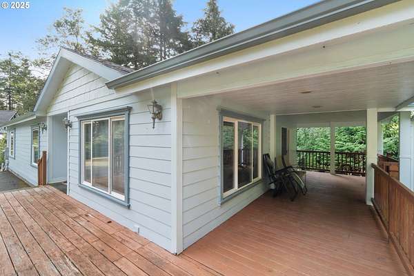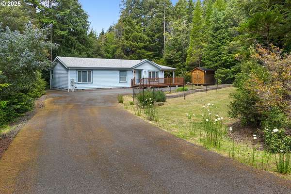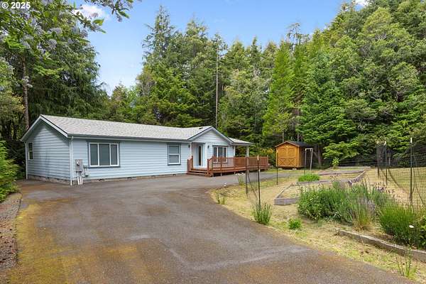Nestled in the desirable Cedar Terrace Neighborhood this 1431 Sq. Ft 3 bedroom 2 bathroom home offers a perfect blend of comfort and nature. Situated on 1.5 acres, this inviting residence features newer 2022 Rock maple flooring throughout and an open concept living area. The primary bedroom boasts a generous closet and an ensuite bath with soaking tub overlooking the serene forest. The additional two bedrooms provide flexibility, whether for family, guests, or a home office. Skylights in the kitchen and main bathroom flood the home with natural light, while the kitchen's breakfast bar and adjacent dining area create a seamless flow for daily living. Step outside onto the partially covered wrap-around deck, an ideal spot for barbecuing and enjoying the peaceful surroundings. The landscaped garden area features in-ground beds and fencing, ready for your green thumb. Additional conveniences include a paved driveway with RV parking and a garden shed for extra storage.This well-maintained home is a must see for those seeking private retreat with modern comforts. schedule your showing today!