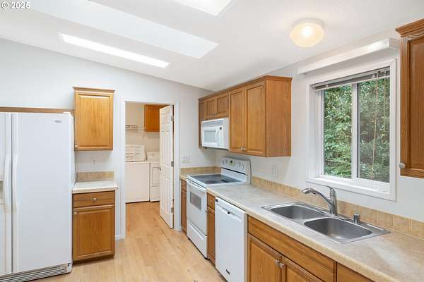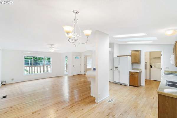- Ceiling Fan, Hardwood Floors, High Ceilings, Laundry, Skylight, Soaking Tub, Washer Dryer