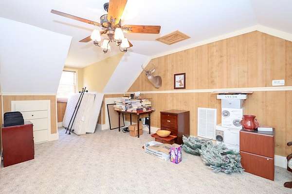 - Ceiling Fan(s), Fireplace-Wood, Walk-In Closet(s), Workshop