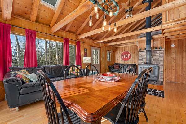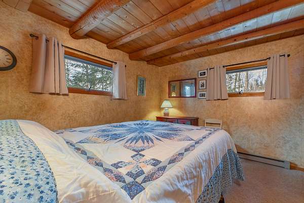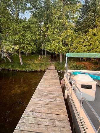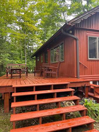 Looking for a true "up north" getaway tucked into the Nicolet National Forest? Welcome to Fay Lake: a 272-acre, full-rec lake (GREAT fishing!) where much of the shoreline is National Forest and will stay wild forever. This beautifully maintained year-round 2+BR/2BA home sits on an incredible 150' of frontage and 2.3 wooded acres, giving you space, privacy, and room to roam. Inside feels like a Colorado chalet with vaulted ceilings, timber beams, cherry cabinets, quartz counters, and hardwood floors. Sleep the whole crew: the full basement plus upper bonus room and loft can easily host 16+ guests. Two woodstoves plus gas and electric heat keep it cozy in every season. Huge lakeview deck, furnished and ready day one. Two garages (attached + detached) for every toy. Minutes from snowmobile & ATV/UTV trails! Fay Lake Association includes 650+ acres of shared trails/woodlands, adjoining Nicolet Forest. Minutes to Pine River paddling, area lakes, & a bar/store; 20 min to Ski Brule & golf.