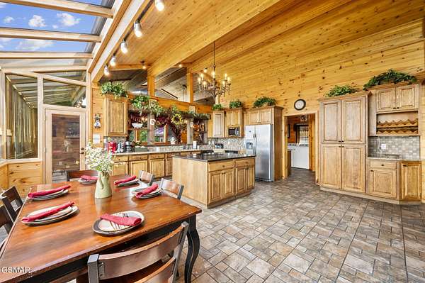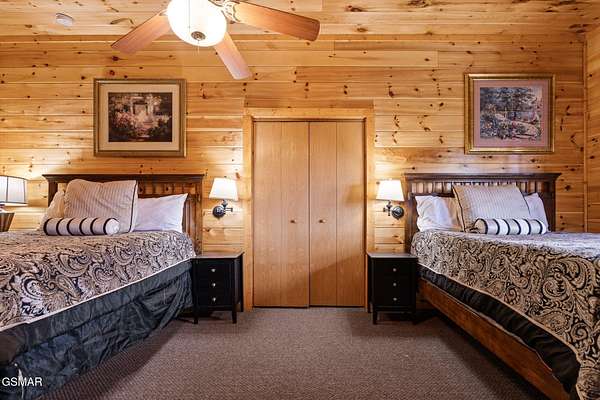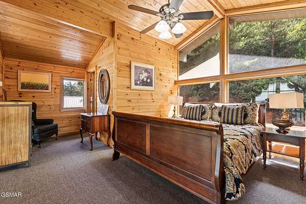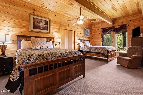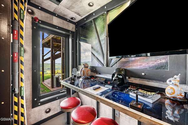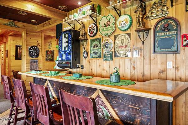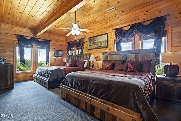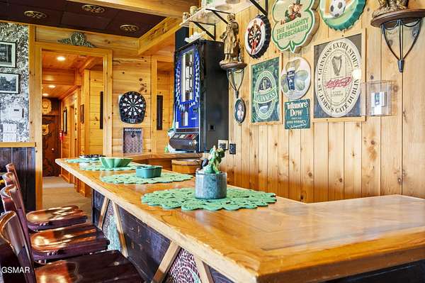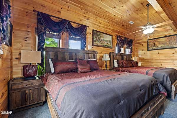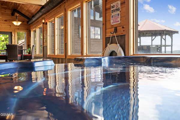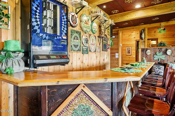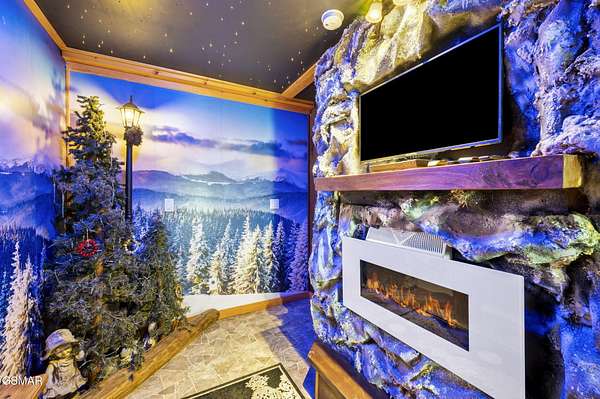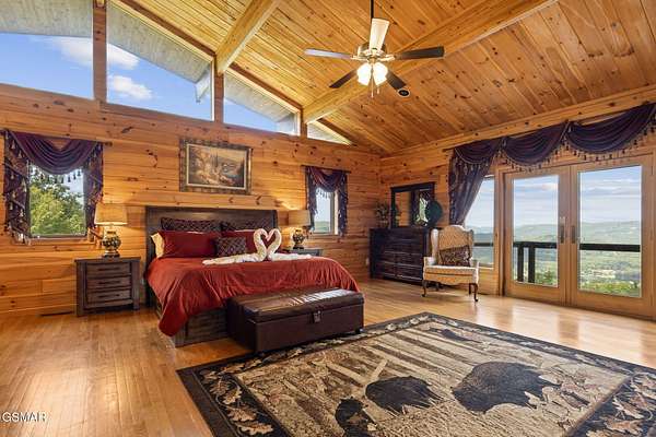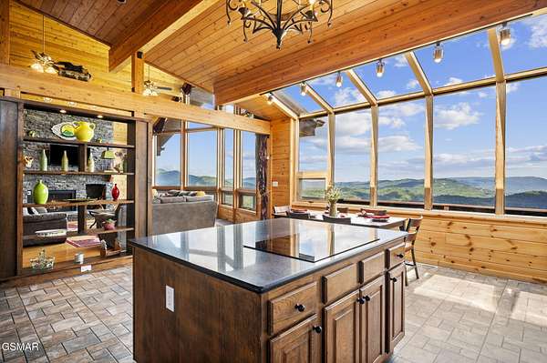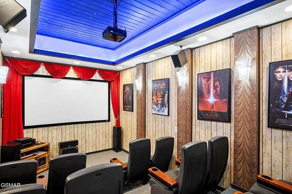 Introducing Celesta Vista Lodge, a true masterpiece in the Smoky Mountains where luxury meets imagination. Perched more than one thousand feet above Wears Valley and bordering the Great Smoky Mountains National Park, with almost 7,000 square feet, this estate lives up to its name, which translates to ''heavenly view.'' From the moment you arrive, panoramic vistas of Wears Valley, Bluff Mountain, and Hatcher Mountain surround you, creating an unforgettable backdrop for every gathering. This extraordinary six-bedroom, eight-bathroom retreat was designed for large families, reunions, weddings, and group getaways. Extensively renovated, including the addition of a private indoor pool house, Celesta Vista is a rare opportunity to own a luxury property very unique to our area. Every detail was thoughtfully created to deliver a once-in-a-lifetime mountain experience. Entertainment abounds with a fully appointed Irish-style pub, complete with billiards, arcade games, and space for celebrations that last well into the night. A custom fifteen-seat movie theater brings the magic of cinema home with surround sound and VIP seating. The indoor pool house is a resort-level escape, offering a heated swimming pool, spillover spa, sauna, and a tropical-inspired Tiki bar overlooking the mountains. Celesta Vista is also filled with touches of wonder. Children and the young at heart will be drawn to two themed fantasy bedrooms-The Jedi Academy, designed as a futuristic starship, and Narnia's Wardrobe, a snowy wonderland hidden behind a wardrobe door. Each space creates memories guests will talk about long after their visit. The main level features a breathtaking great room with floor-to-ceiling windows framing the sweeping valley views. Two chef's kitchens and a grand dining area make hosting effortless. The expansive primary suite offers its own fireplace, spa-style bathroom, and glass-enclosed shower with a view straight into the valley. Outdoor living rivals the interior, with more than 3,000 square feet of decks, a gazebo, an outdoor kitchen, a large hot tub, and landscaped spaces that showcase the Smoky Mountain horizon. Celesta Vista Lodge is more than a luxury cabin-it is an investment in a lifestyle defined by unmatched scenery, extraordinary amenities, and unforgettable experiences. Located just minutes from Pigeon Forge and Gatlinburg, with direct access to the Great Smoky Mountains National Park, it represents the pinnacle of mountain living and the ultimate short-term rental opportunity in East Tennessee.