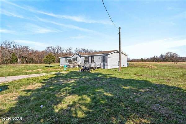 Est $1,173/moVacant land in rural Newton County. Value is in the land and not existing structures. All structures assumed to be uninhabitable. West double wide with current squatter. East and West parcels are being sold in approximately 5 acre plots m/l and larger 10 acre plot m/l. Use driveway as guide for split. Has not been surveyed for split.
