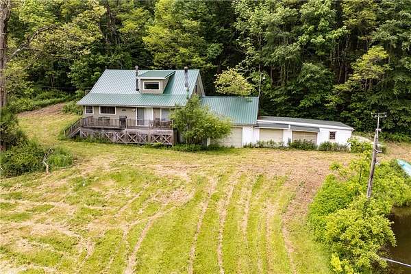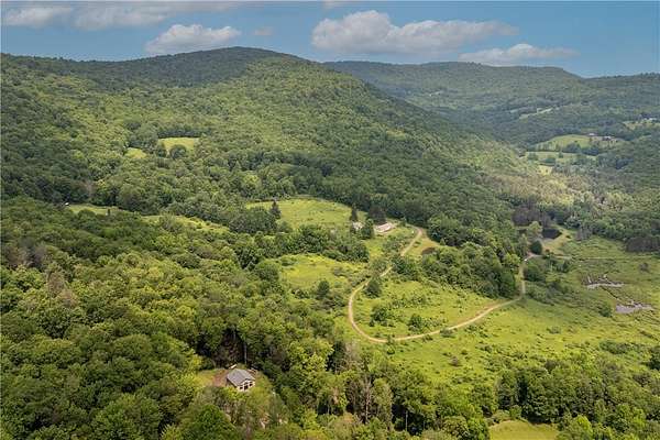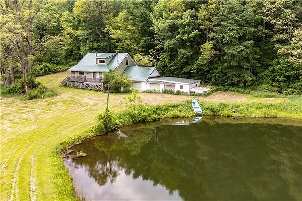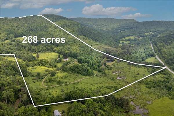This 268-acre Catskills property offers the perfect mix of peace, privacy, and room to roam. With two homes, stocked fishing ponds, meandering streams, barns, garages, a horse stable, and miles of trails, it's an ideal setting for outdoor living and exploration. The lower home features 4 bedrooms and 2 bathrooms, with 3 of the bedrooms conveniently located on the first floor. Inside, you'll find a kitchen-family room combo, open living and dining area, fireplace, and a wood-burning Queen stove for cozy nights. Step out onto the large deck to take in the fresh air, or enjoy morning coffee from the primary suite's private balcony. Up the hill, the second home is a 2014, 3-bedroom, 2-bath with an open layout, fireplace, Kitchen Queen stove, and a front porch overlooking a peaceful pond. There's plenty of storage with multiple garages, barns, and an automatic chicken coop setup-fresh eggs made easy. The land is enrolled in the NY 480A Forestry Management Program, offering long-term land care, reduced property taxes, and potential timber income. Being sold fully furnished and ready to go, this property is well-suited as a weekend escape, full-time homestead, private family compound-or a smart investment with income potential from vacation rentals and timber.